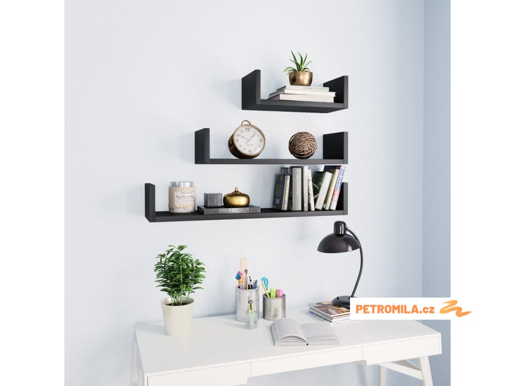Police jsou vyrobeny z dřevotřísky, která zajišťuje jejich pevnost, odolnost a dlouhou životnost. Design ve tvaru písmene U nabízí dostatek prostoru pro vystavení dekorací a květin nebo k ukládání vašich knih, CD a dalších nezbytností.