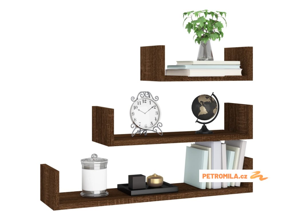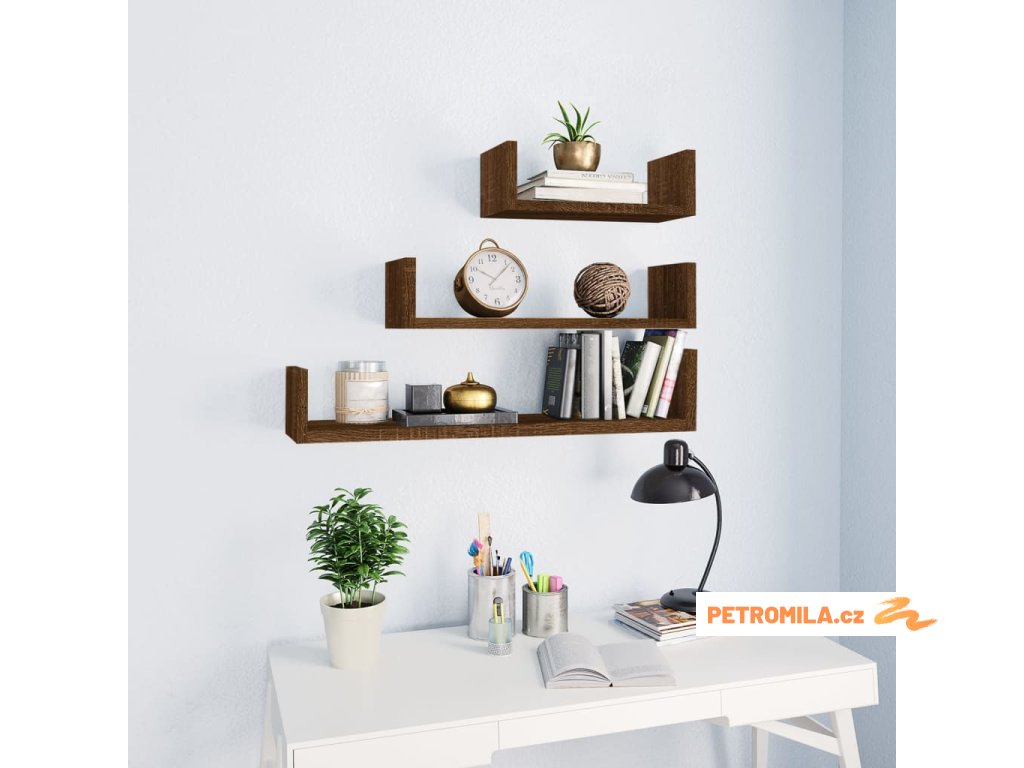 Nástěnné police 3 ks hnědý dub kompozitní dřevo