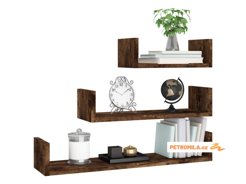 Nástěnné police 3 ks kouřový dub kompozitní dřevo