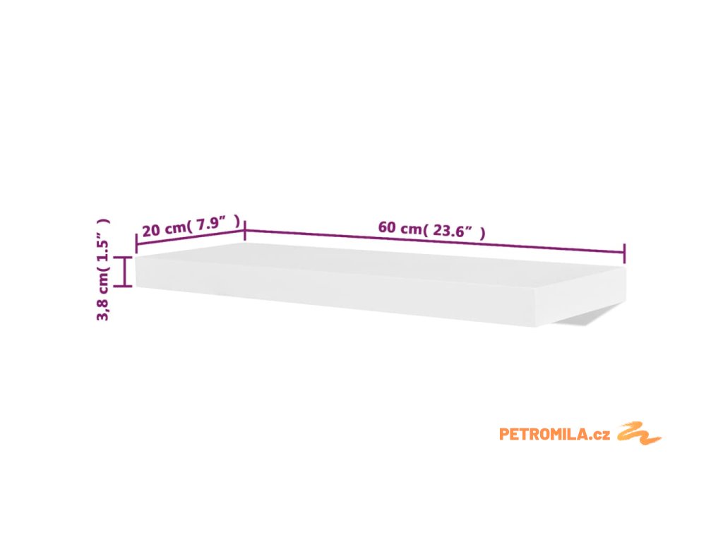 - Rozměry police: 60 x 20 x 3,8 cm (Š x H x V)