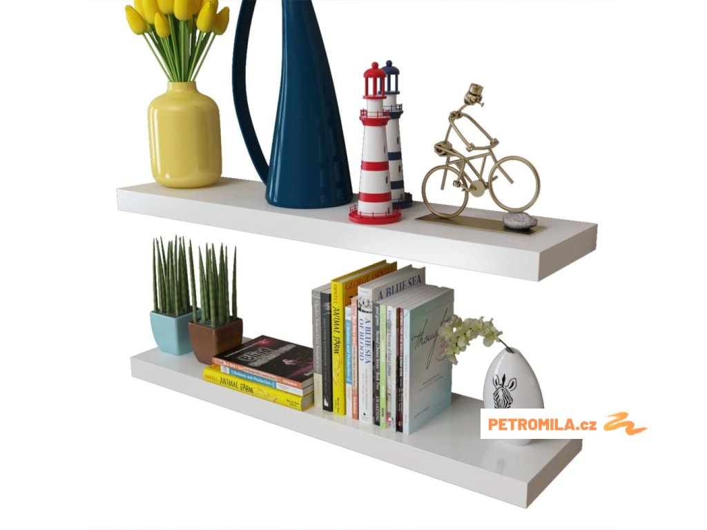 Police snadno připevníte pomocí neviditelného systému a jsou ideální pro vystavení věcí jako jsou trofeje, knihy, sbírky různých předmětů apod. Tato police skvěle zapadne do designu každého pokoje a promění jinak holou a nevýraznou zeď v dominantu místnosti! Police jsou vyrobené z vysoce kvalitních MDF desek s matnou povrchovou úpravou.