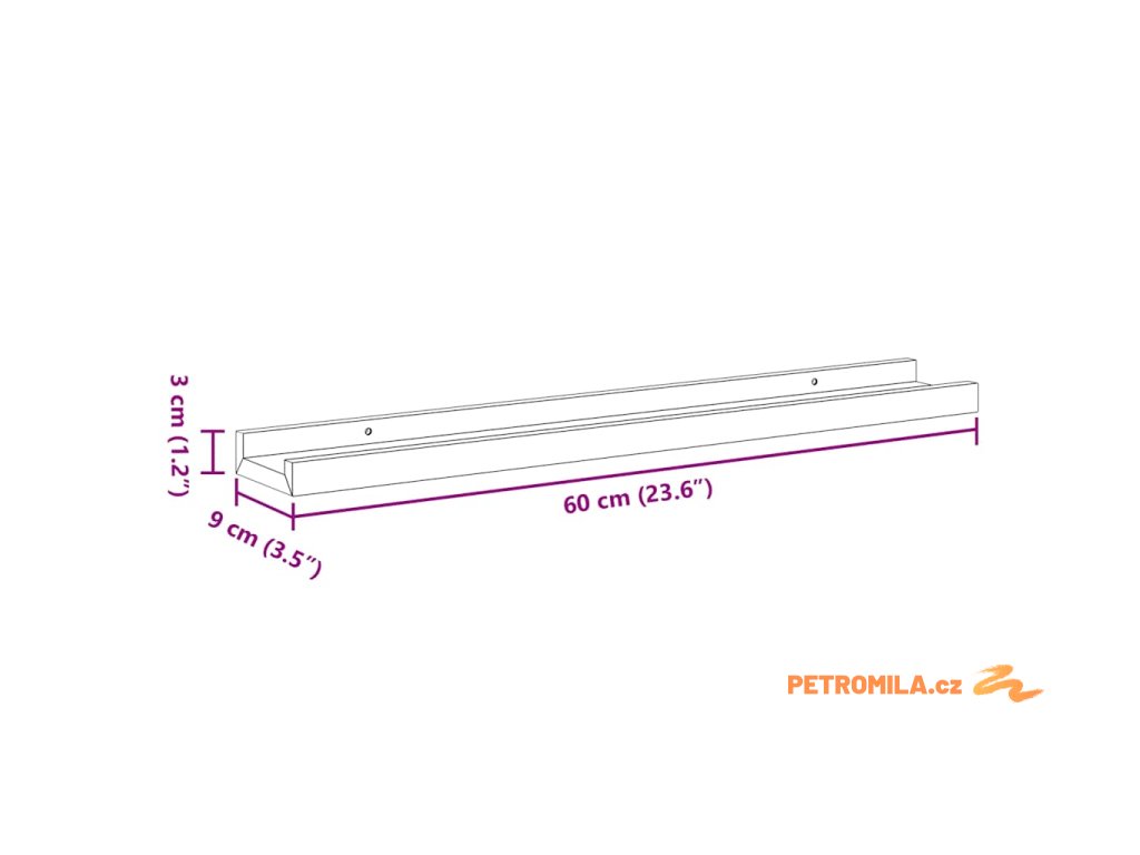- Rozměry: 60 x 9 x 3 cm (Š x H x V)