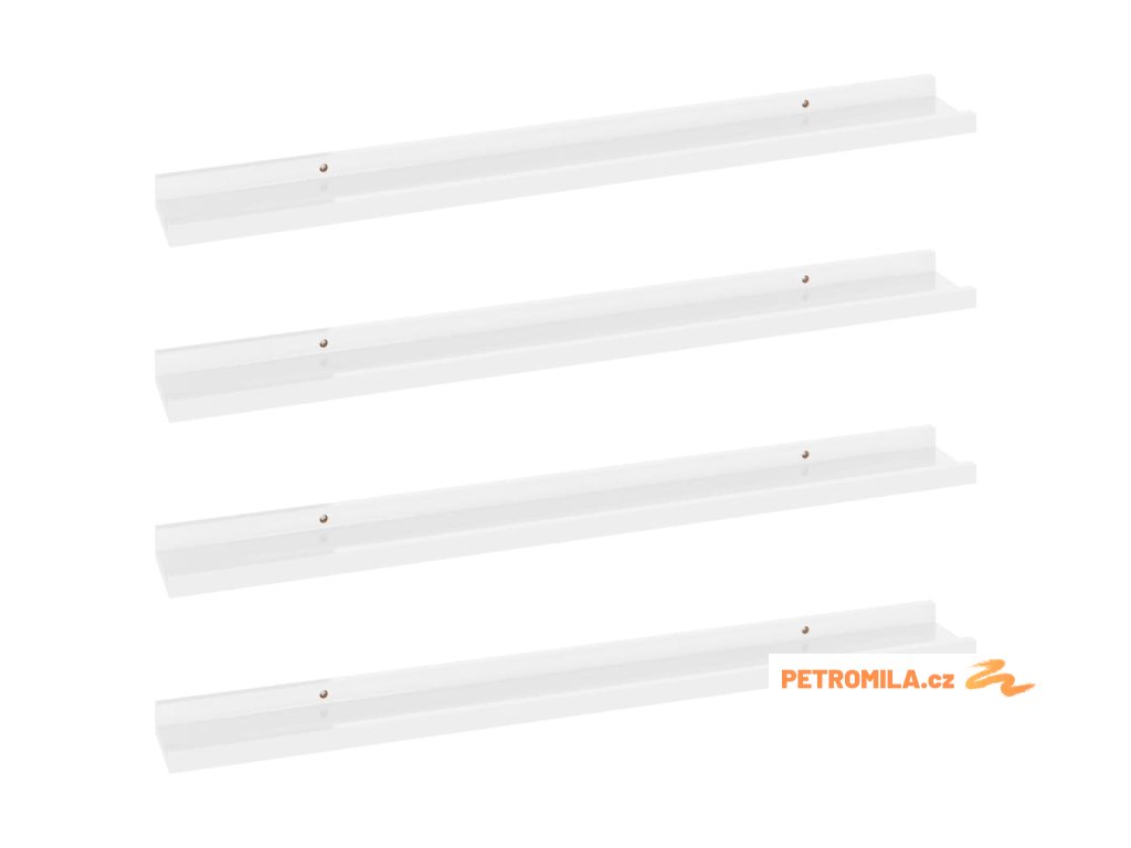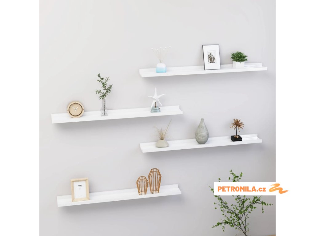 Nástěnné police 4 ks bílé s vysokým leskem 80 x 9 x 3 cm