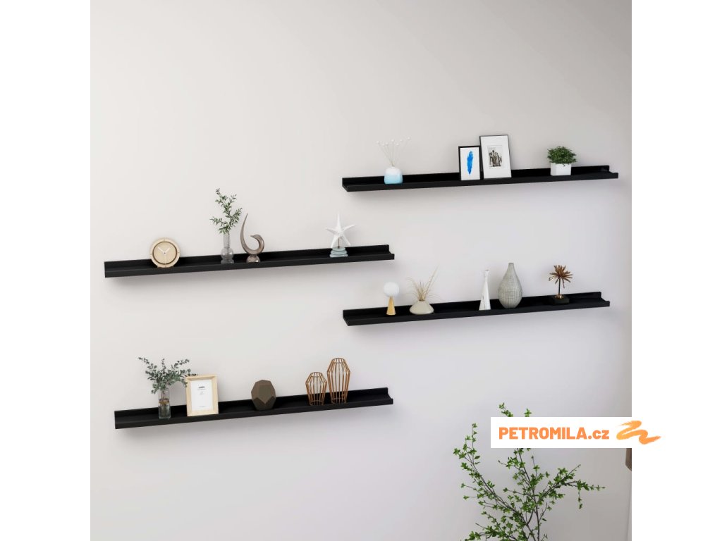 Nástěnné police 4 ks černé 100 x 9 x 3 cm