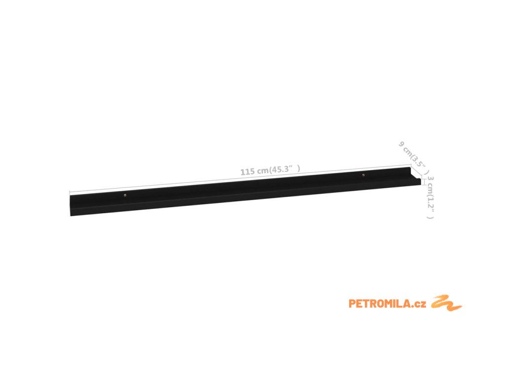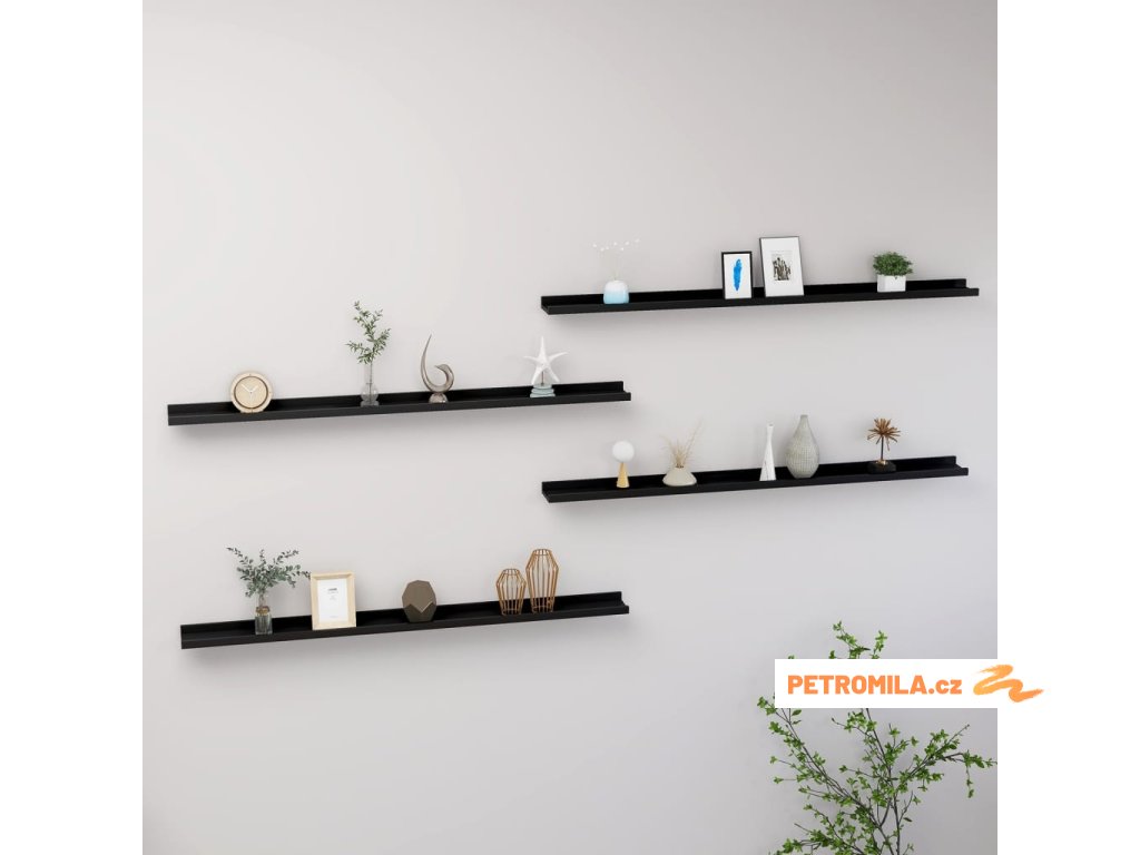 Nástěnné police 4 ks černé 115 x 9 x 3 cm
