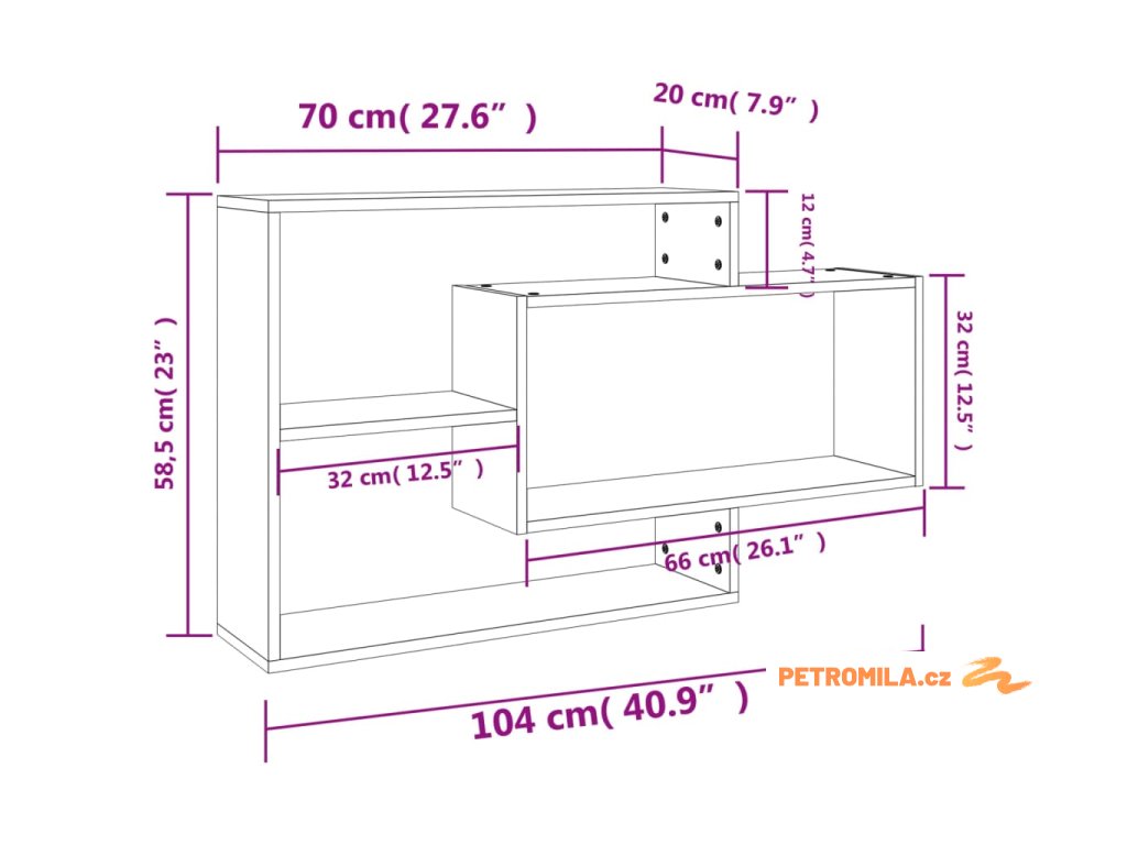 - Rozměry: 104 x 20 x 58,5 cm (Š x H x V)