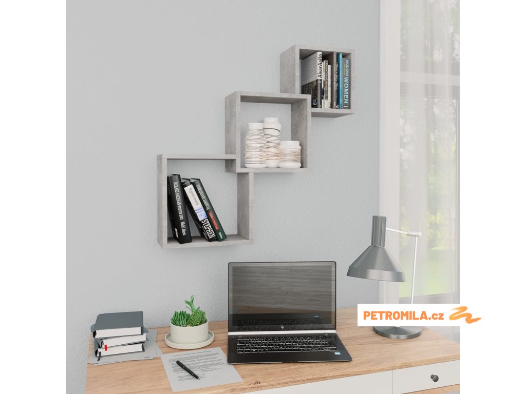 Nástěnné police kostky betonově šedé 68x15x68 cm