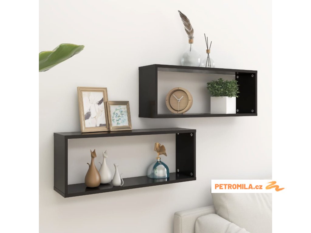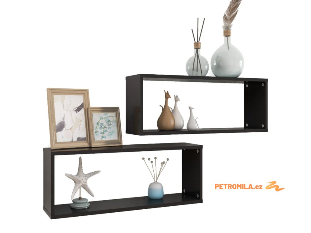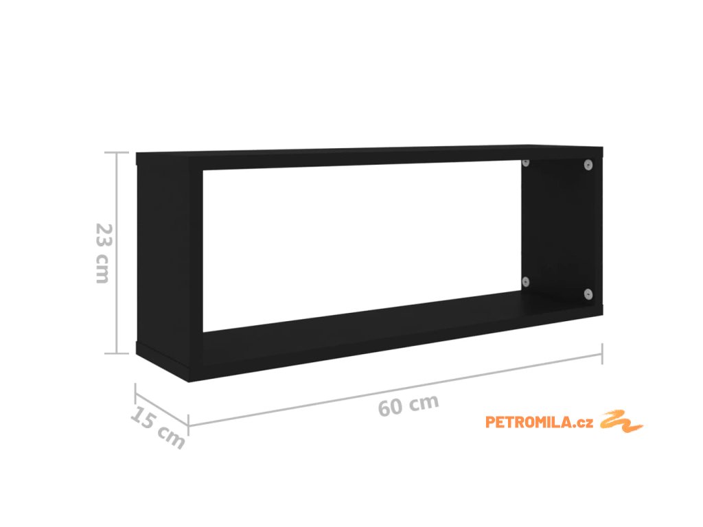 Nástěnné police krychlové 2 ks černé 60x15x23 cm dřevotříska