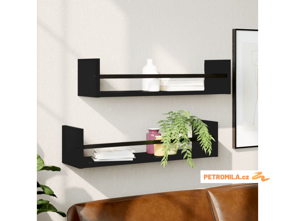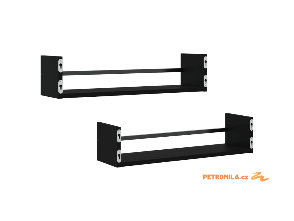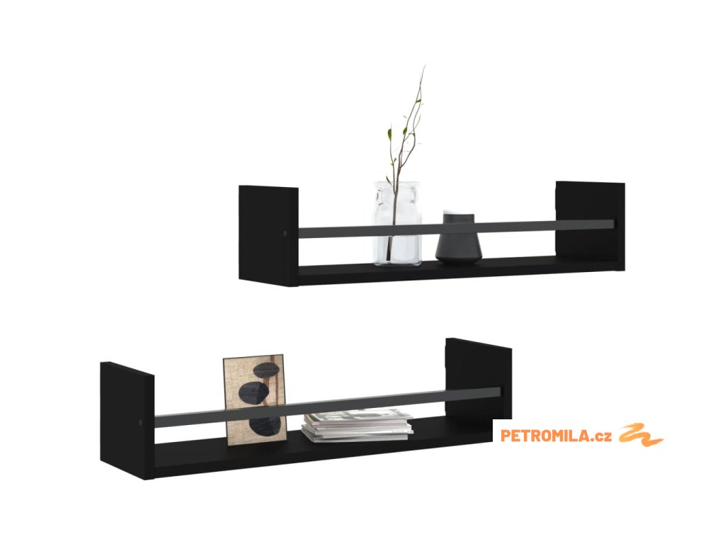 Nástěnné police s tyčemi 2 ks černé 60 x 16 x 14 cm