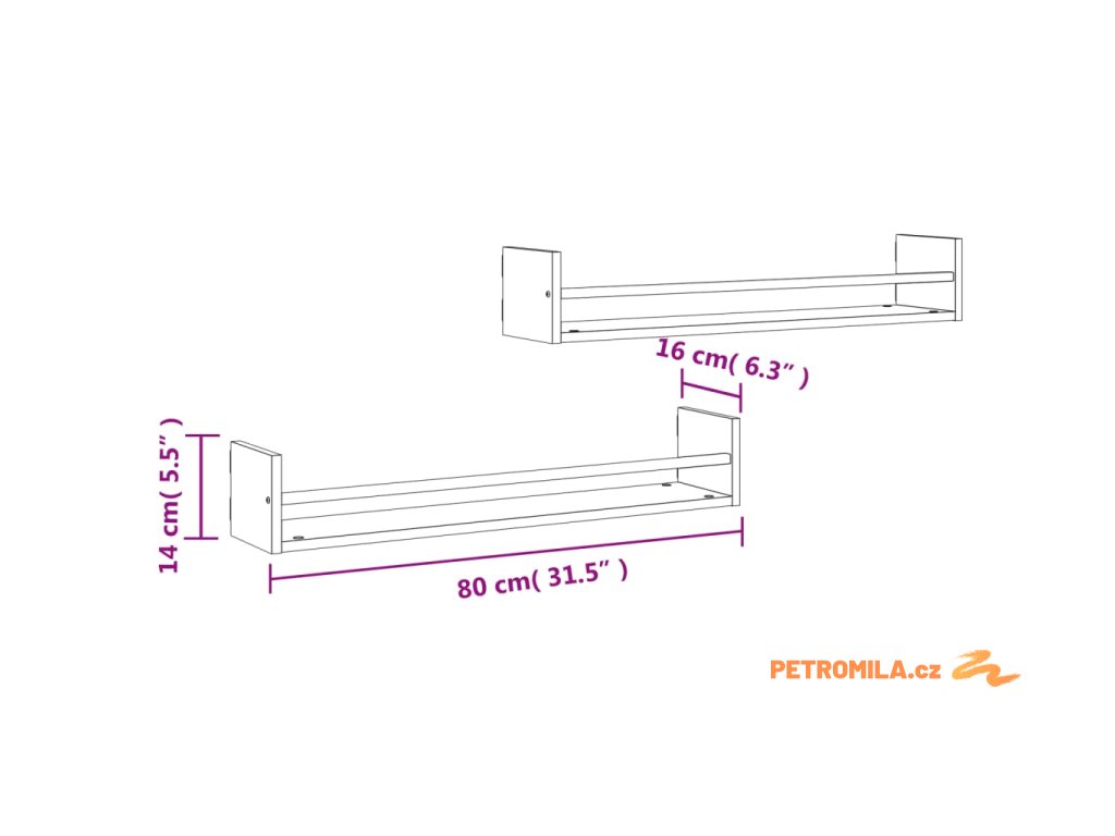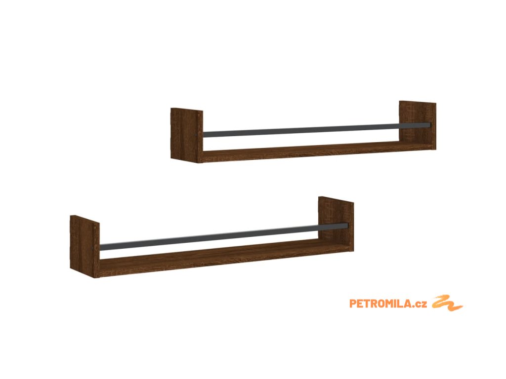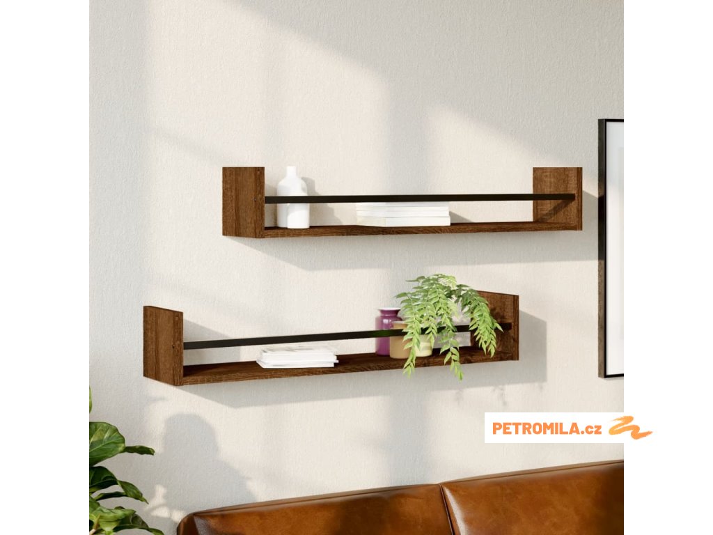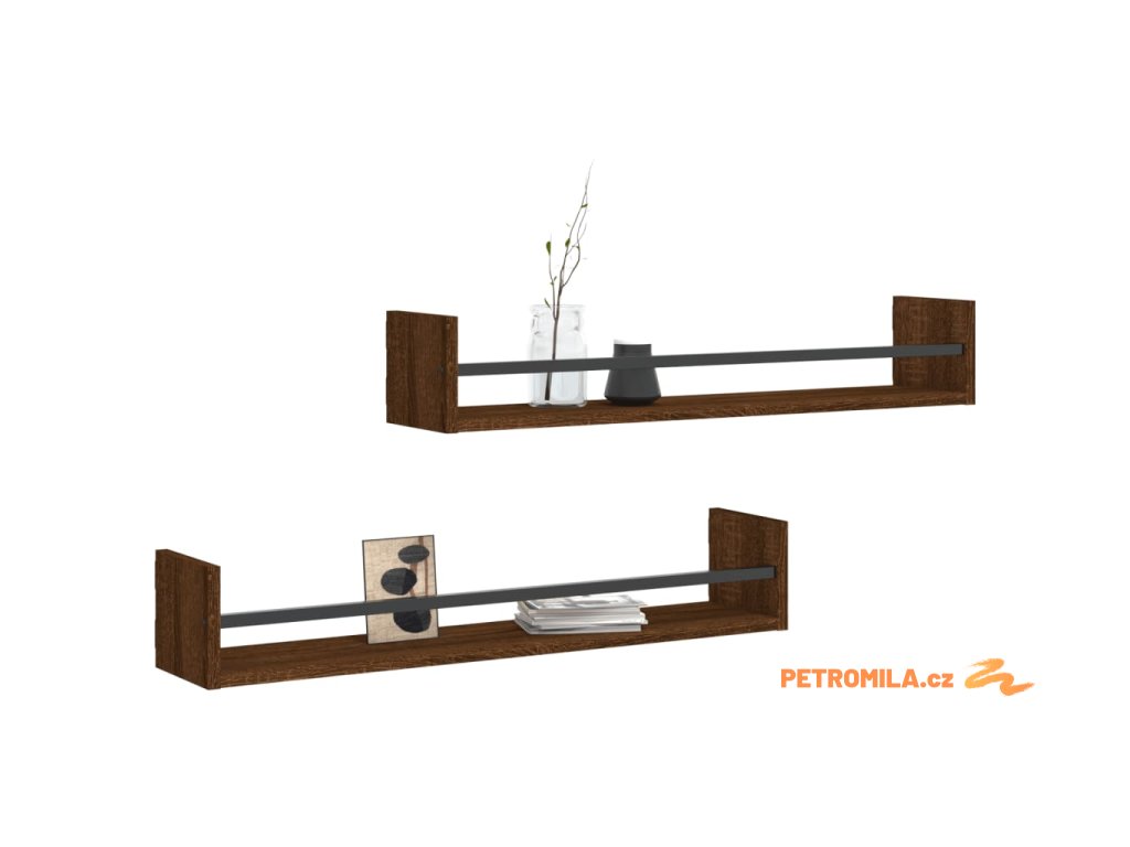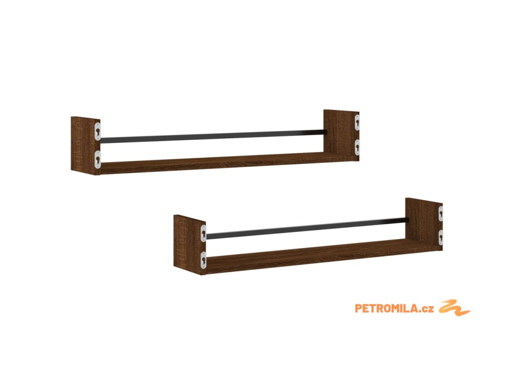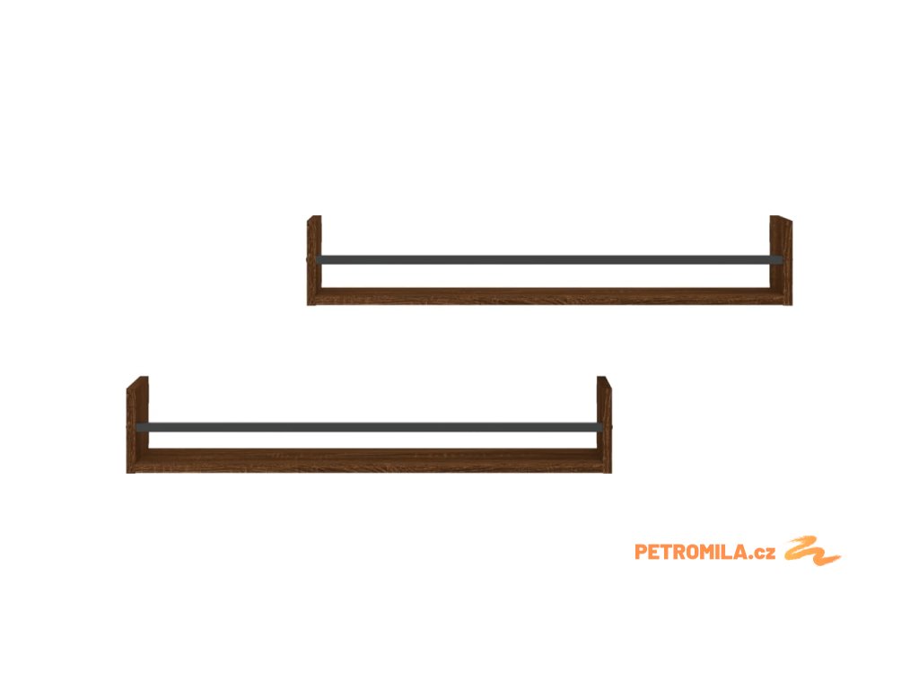 Nástěnné police s tyčemi 2 ks hnědý dub 80 x 16 x 14 cm