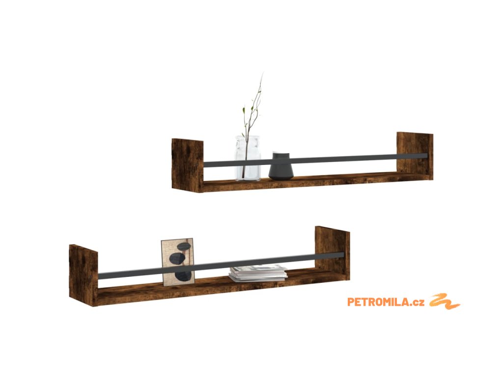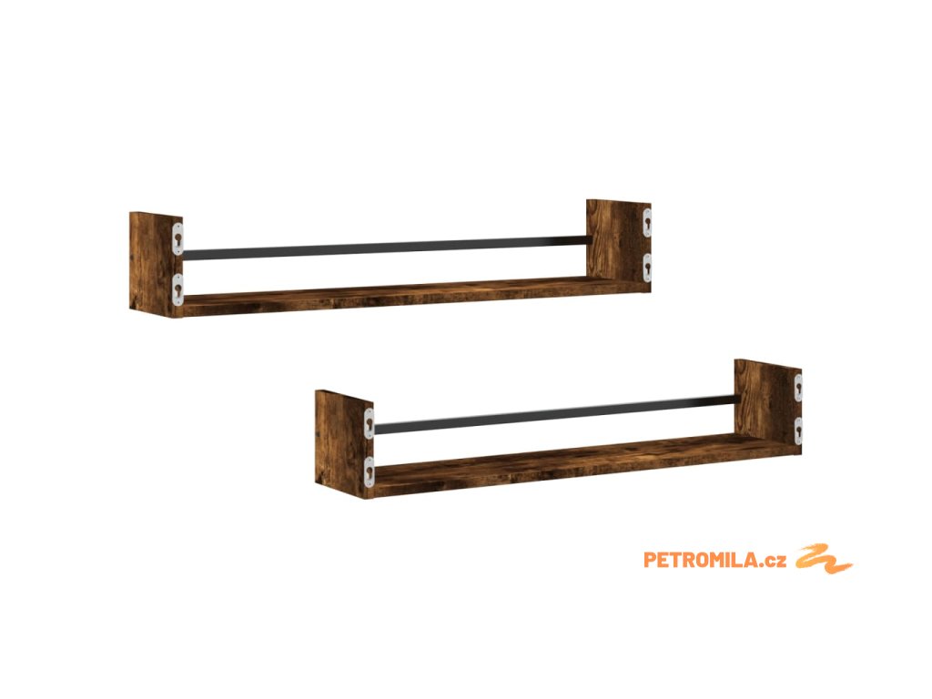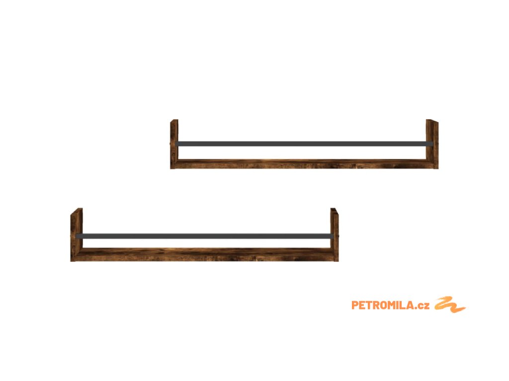Nástěnné police s tyčemi 2 ks kouřový dub 80 x 16 x 14 cm
