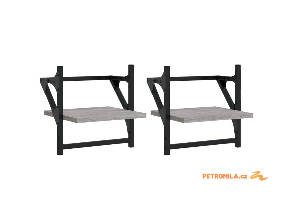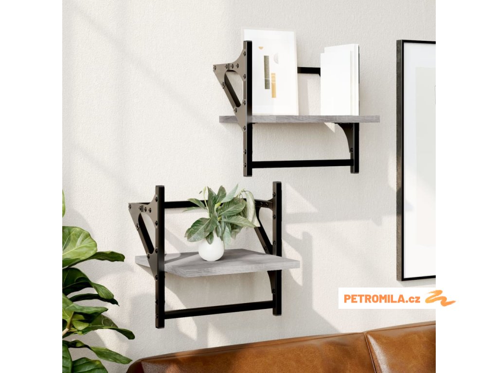 Nástěnné police s tyčemi 2 ks šedé sonoma 30 x 25 x 30 cm