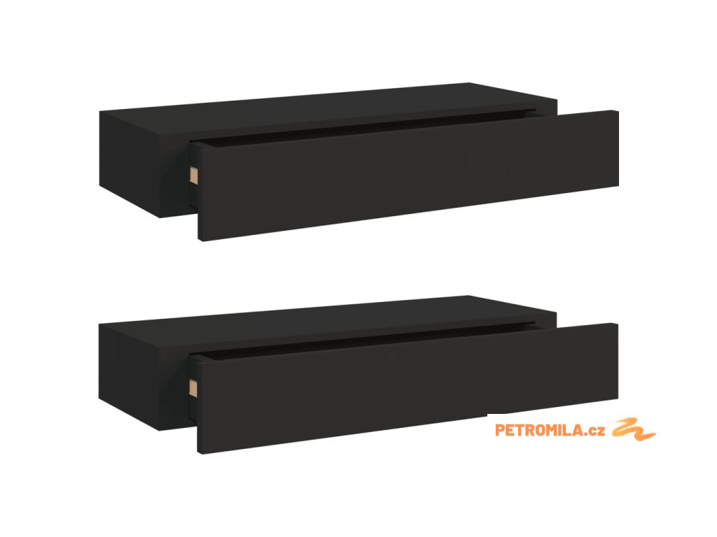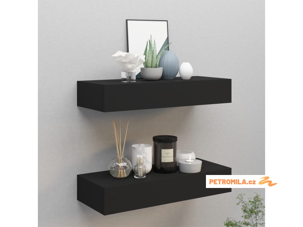 Nástěnné police se zásuvkou 2 ks černé 60 x 23,5 x 10 cm MDF
