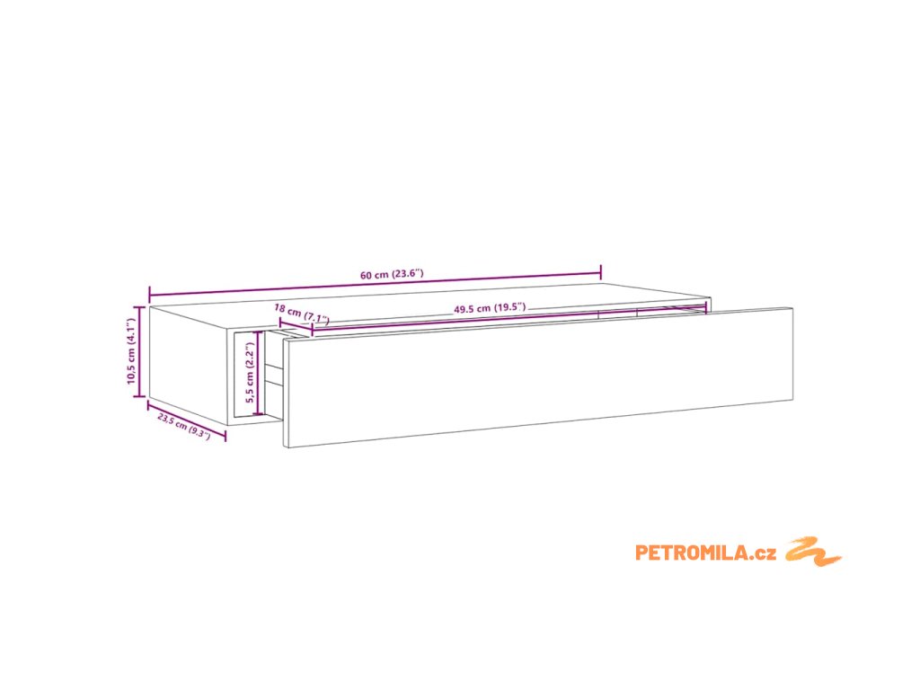 - Rozměry: 60 x 23,5 x 10 cm (Š x H x V)