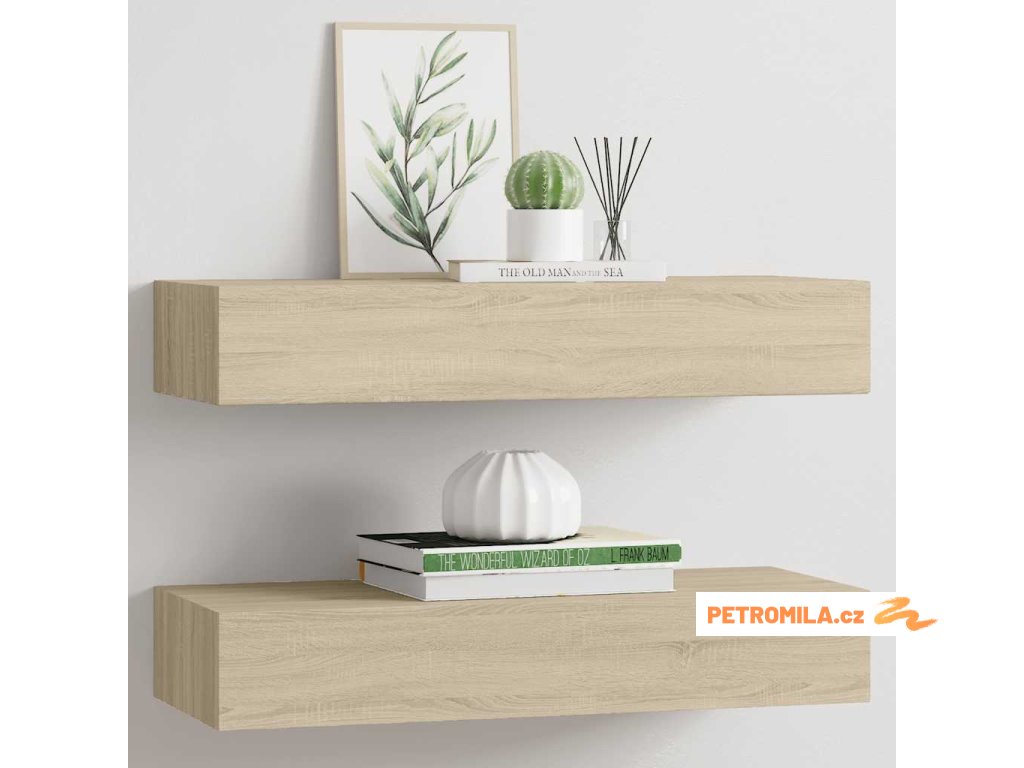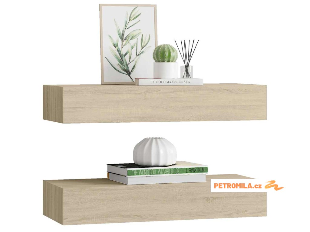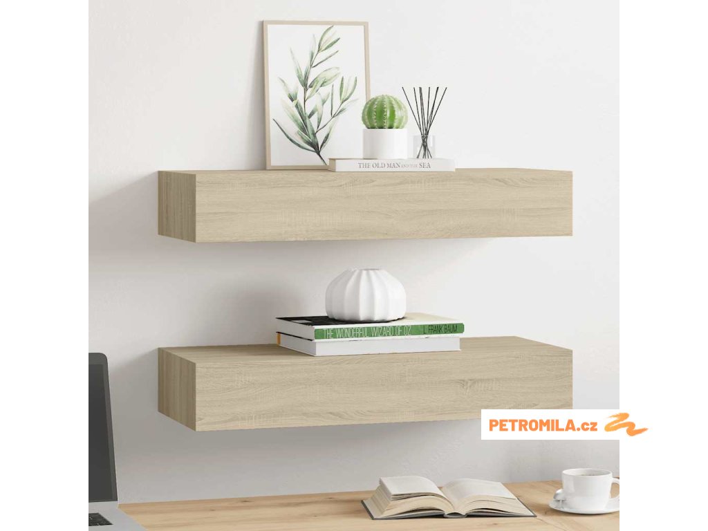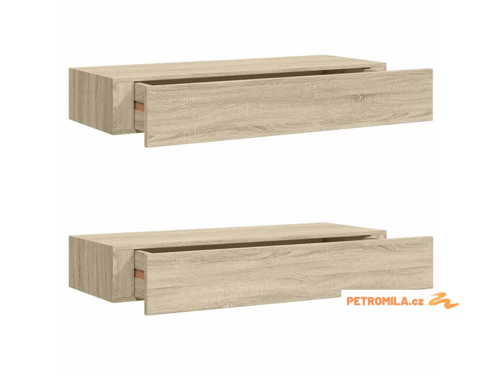 Nástěnné police se zásuvkou 2 ks dub 60 x 23,5 x 10 cm MDF