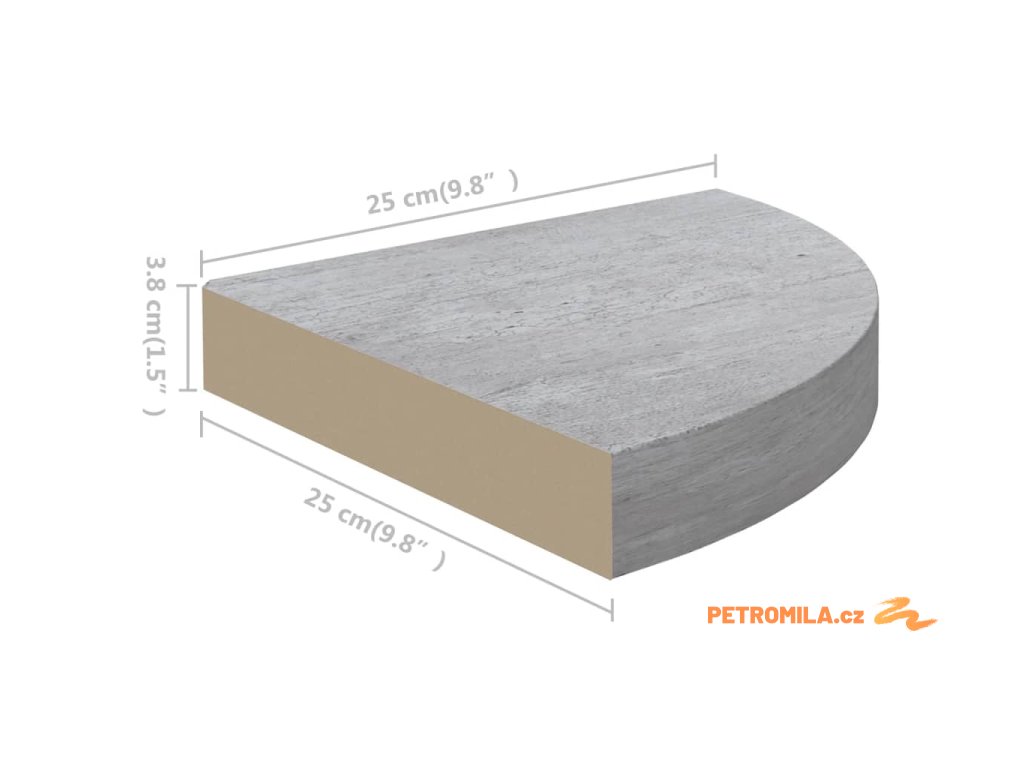 Nástěnné rohové police 2 ks betonově šedé 25 x 25 x 3,8 cm MDF