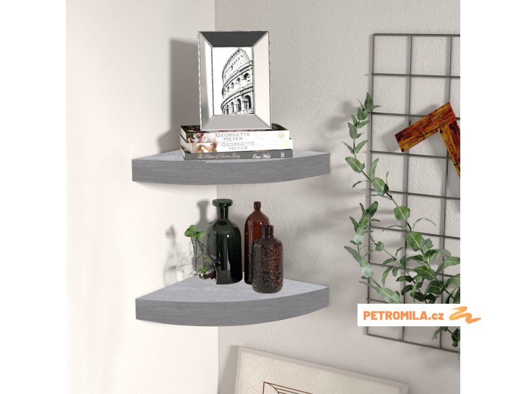 Tyto stylové rohové police jsou ideálním místem pro vystavení vašich oblíbených knih, ozdob, fotografií, trofejí apod.