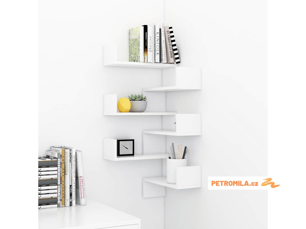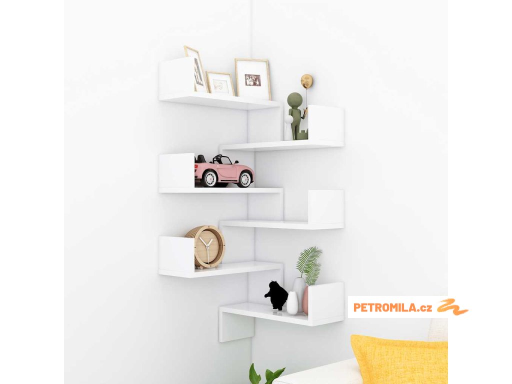 Poznámka: Balení obsahuje dva kusy nástěnné rohové police.