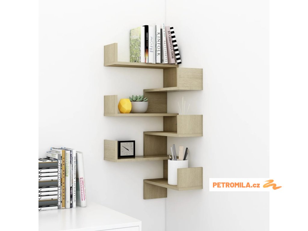 Tato stylová nástěnná rohová police, která je krásným i funkčním doplňkem, se skvěle hodí do vašeho obývacího pokoje, ložnice nebo kuchyně.