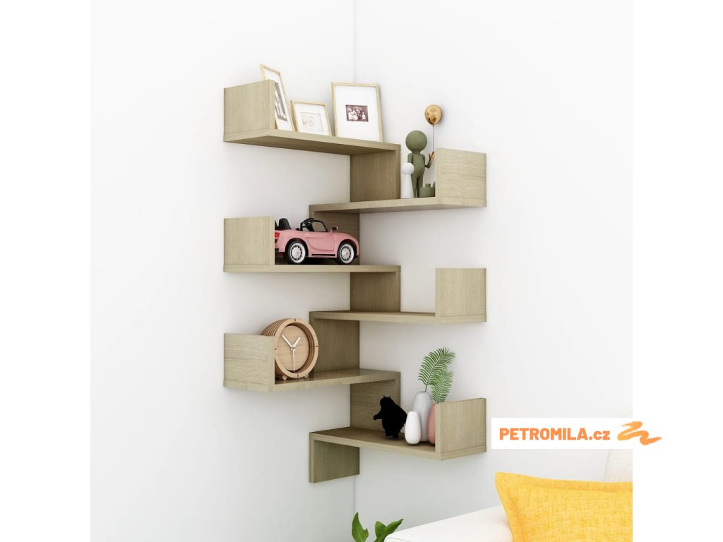 Nástěnná rohová police je stabilní a robustní. Její jedinečný design z ní dělá inovativní dekorační doplněk. Můžete si na ni odložit různé drobnosti a vystavit vaše oblíbené dekorativní předměty, jako jsou trofeje, knihy, sběratelské předměty, ozdoby atd. Police je velmi elegantní a ideálně využije rohový prostor.