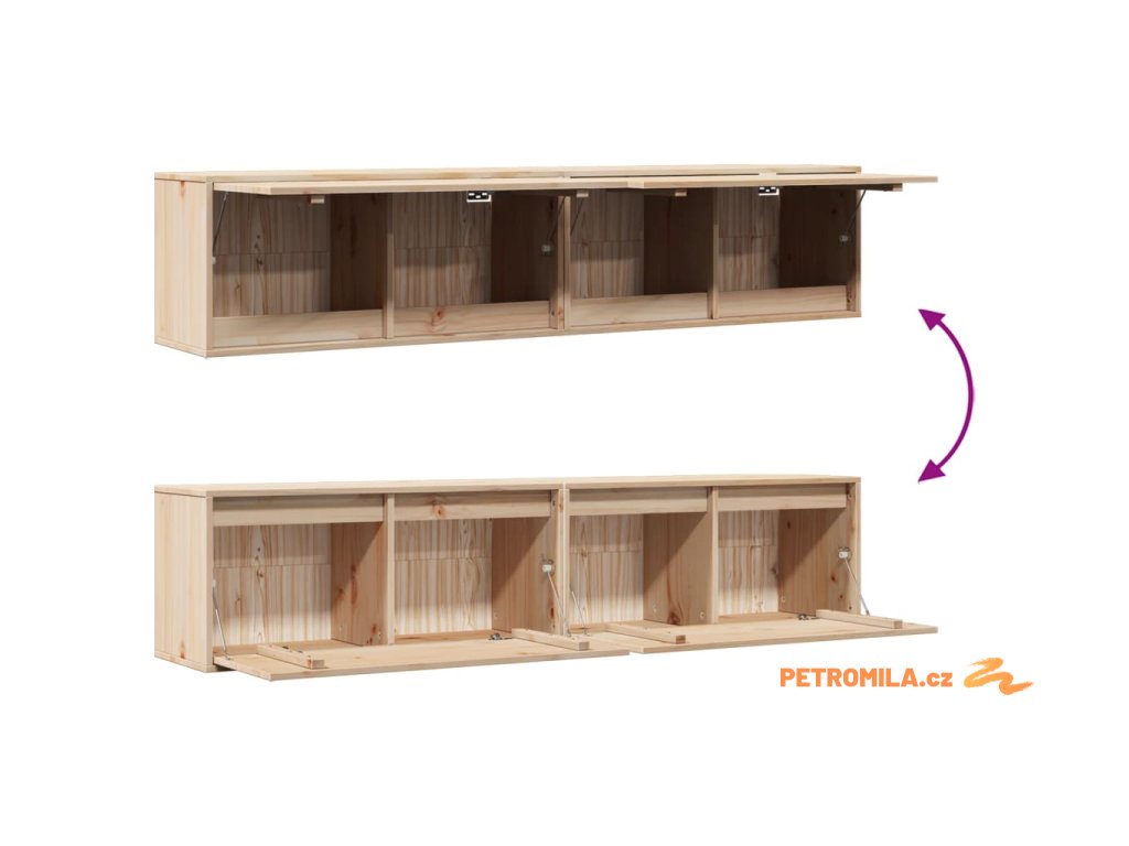 Závěsné skříňky jsou vyrobené z masivního borového dřeva, které zajišťuje jejich pevnost, odolnost a dlouhou životnost. Poslouží vám jako ideální místo pro uložení knih, sběratelských předmětů, dekorací a dalších věcí. Prázdnou stěnu tak promění v designový prvek. Plovoucí skříňky se navíc snadno čistí vlhkým hadříkem.