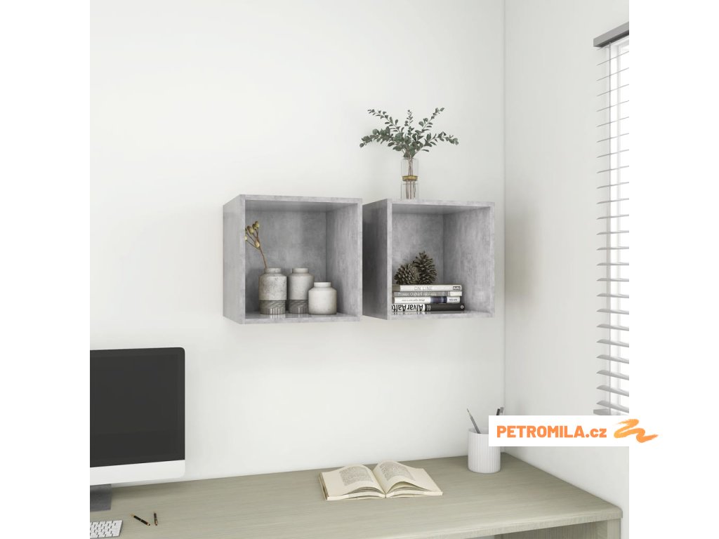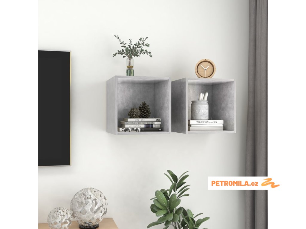 Nástěnné skříňky 2 ks betonově šedé 37 x 37 x 37 cm dřevotříska