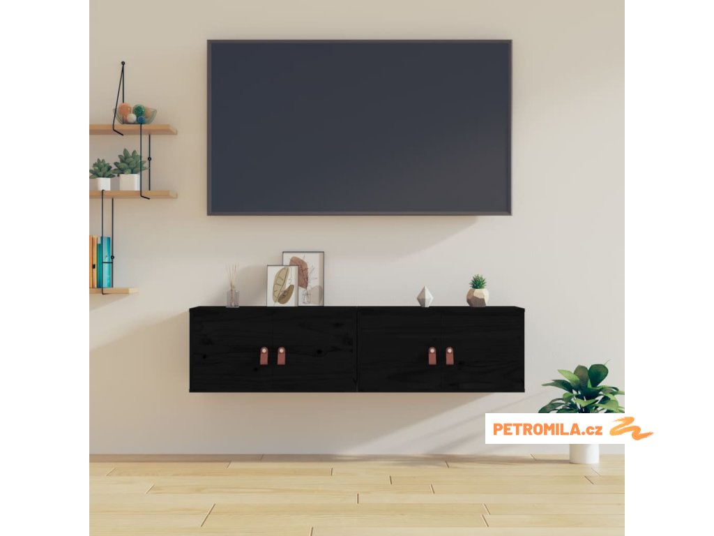 Nástěnné skříňky 2 ks černé 60 x 30 x 30 cm masivní borovice