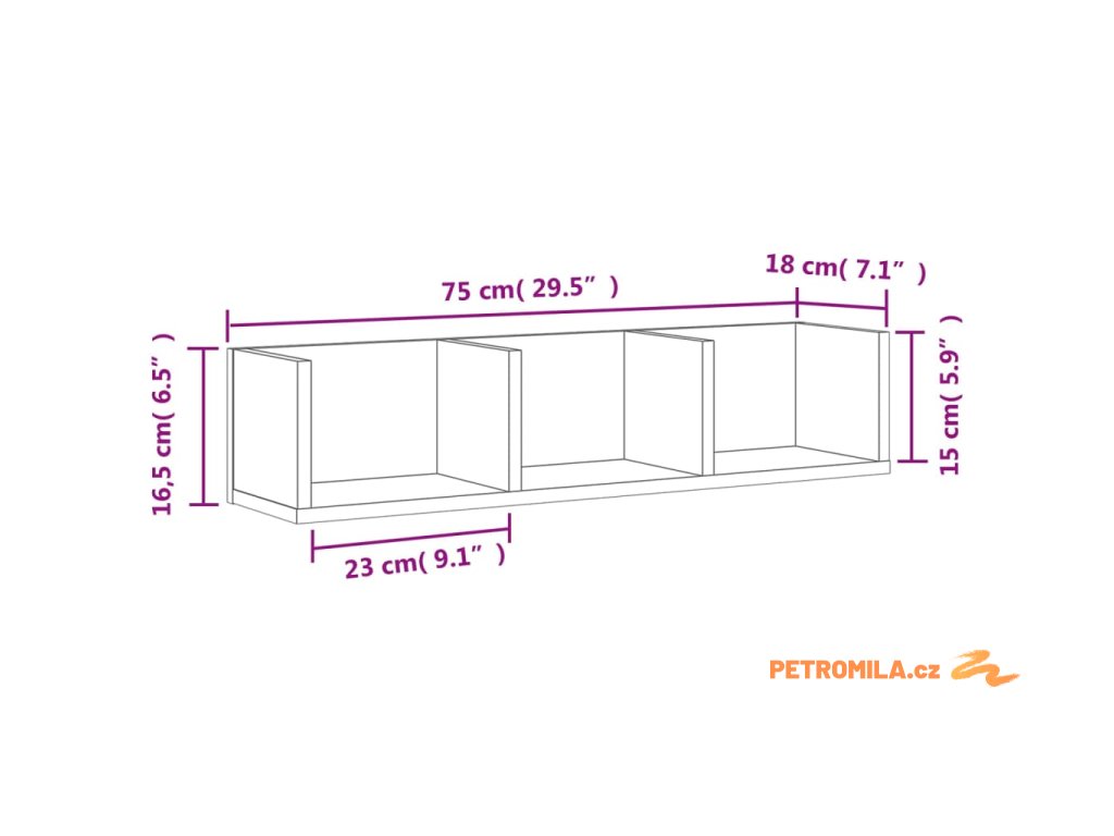 - Rozměry: 75 x 18 x 16,5 cm (Š x H x V)