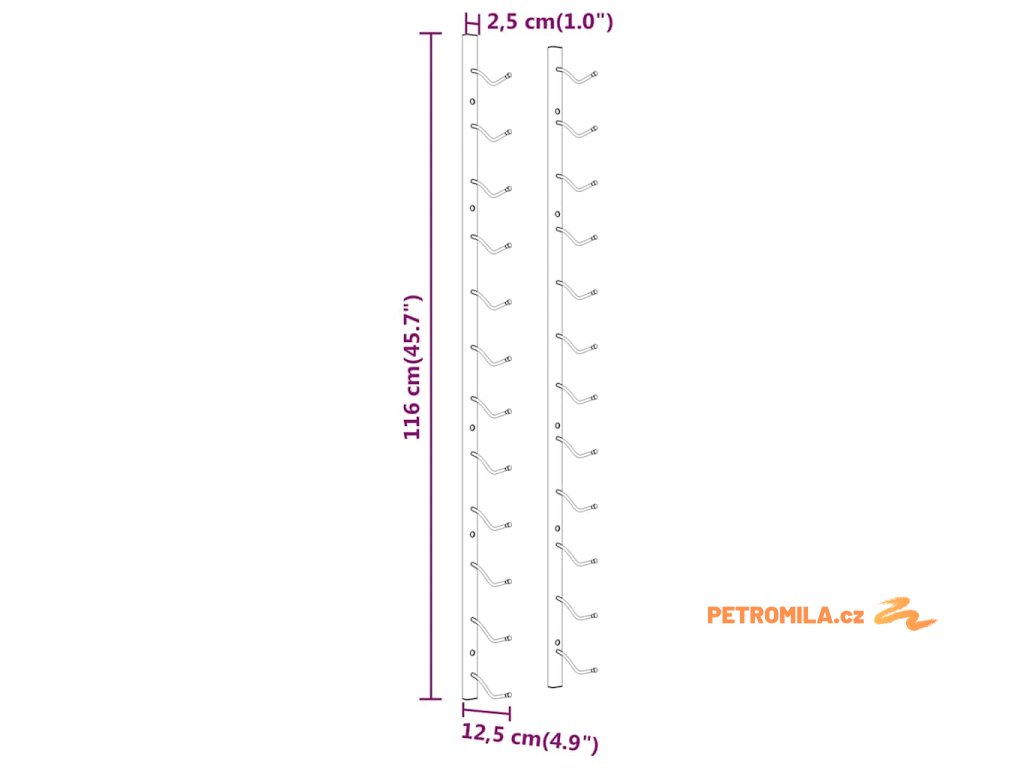 - Rozměry: 12,5 x 2,5 x 116 cm (D x Š x V)