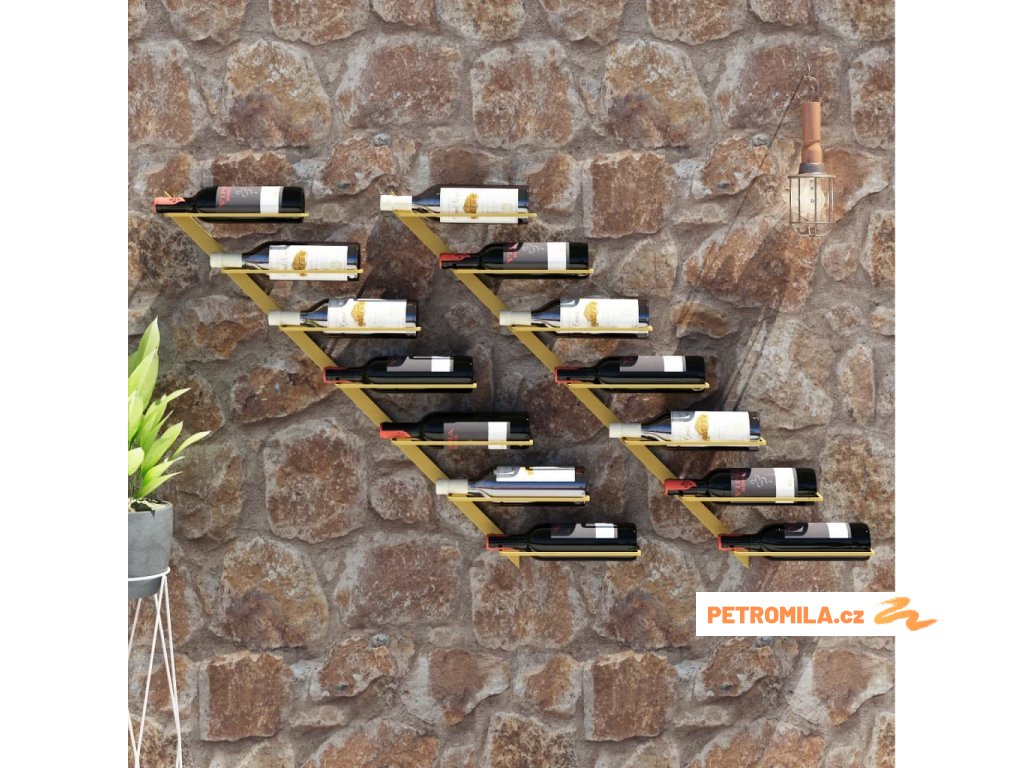 Nástěnné stojany na víno na 7 lahví 2 ks zlaté kov