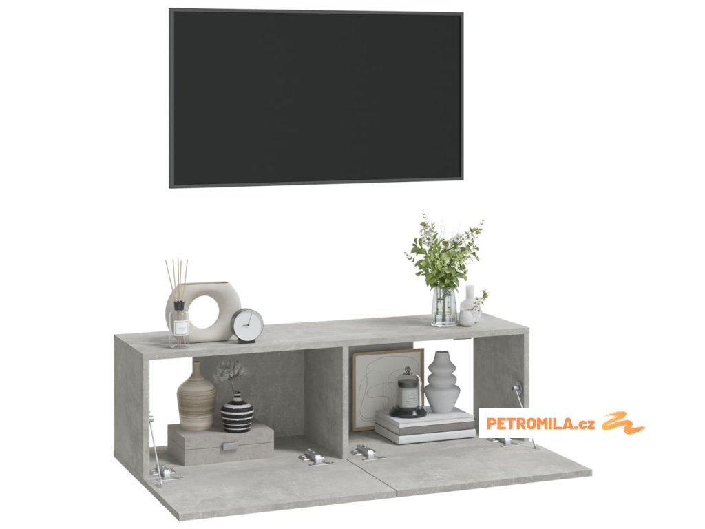 Nástěnné TV skříňky 2 ks betonově šedé 100x30x30 cm kompozit