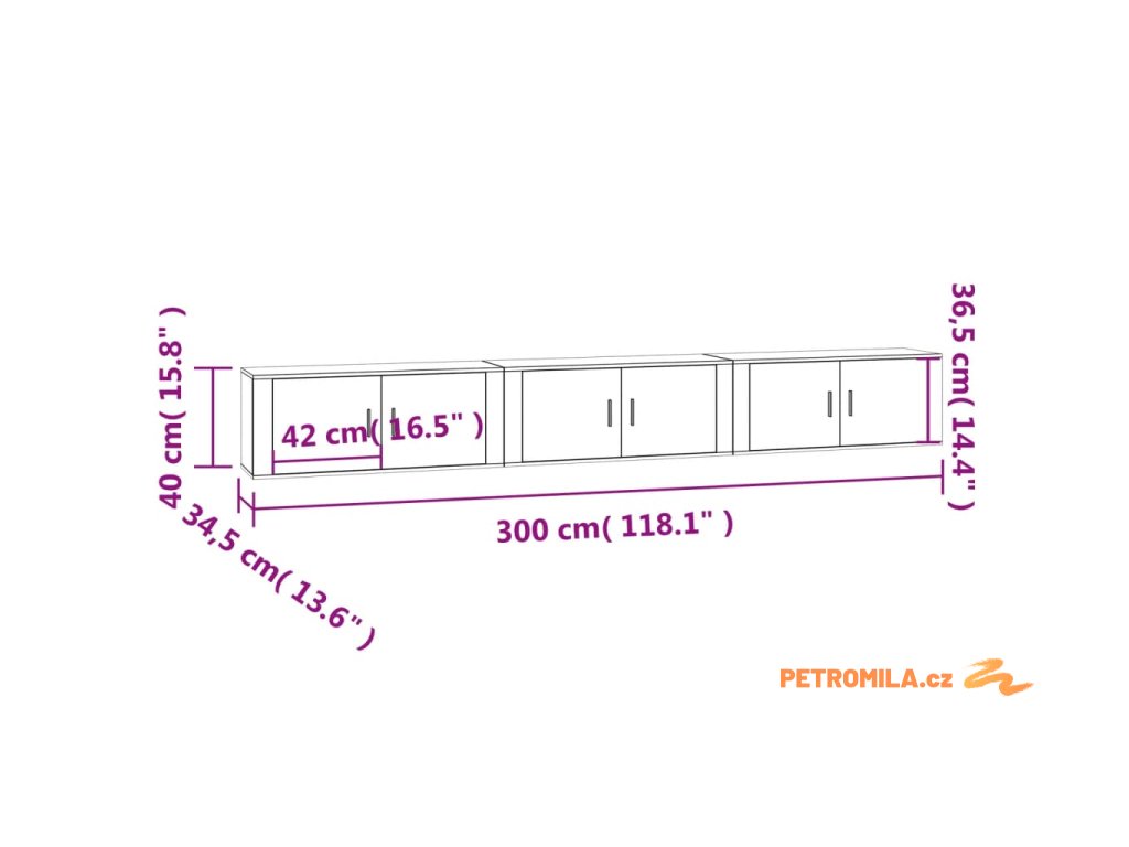 - Rozměry (každý kus): 100 x 34,5 x 40 cm (Š x H x V)