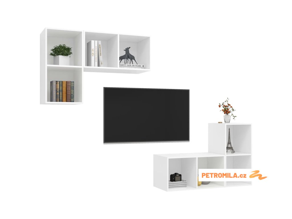 Tento set nástěnných TV skříněk nabízí spoustu úložného prostoru pro organizaci různých předmětů a ve vaší domácnosti bude nepochybně praktickým a poutavým doplňkem.