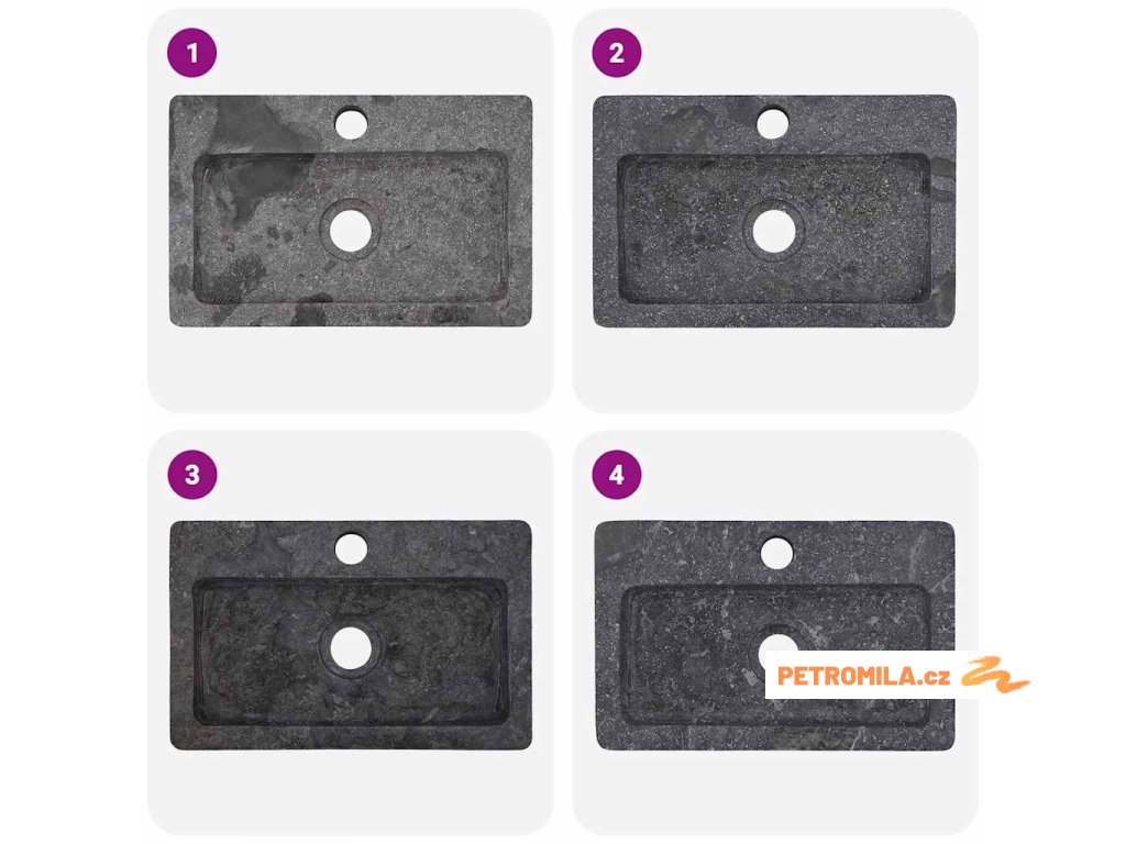 Poznámka: Mramor je přírodní produkt, a proto se v jeho zbarvení mohou vyskytovat drobné rozdíly. Zejména u šedého mramoru může být skutečný produkt světlejší nebo tmavší než na fotografiích a v jeho zbarvení se též mohou vyskytnout kombinace různých barev. Příklady skutečné barvy výrobku naleznete na posledním obrázku.