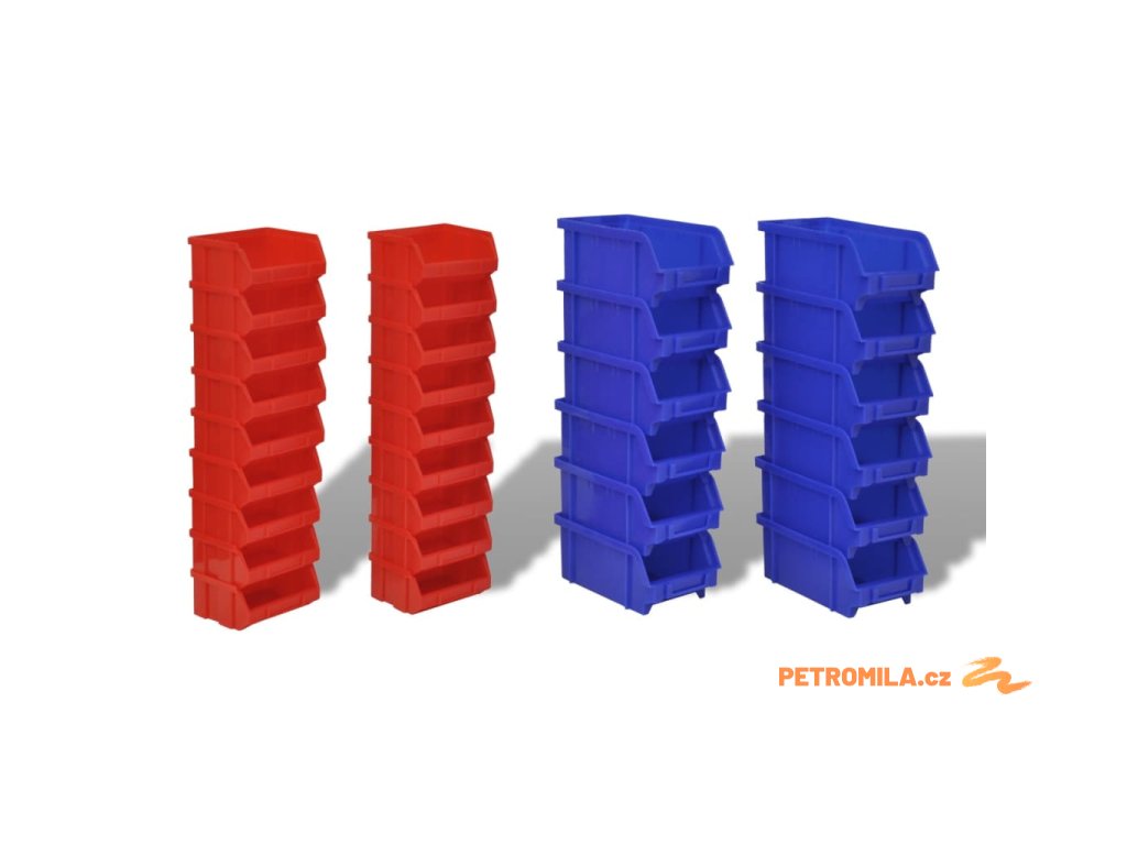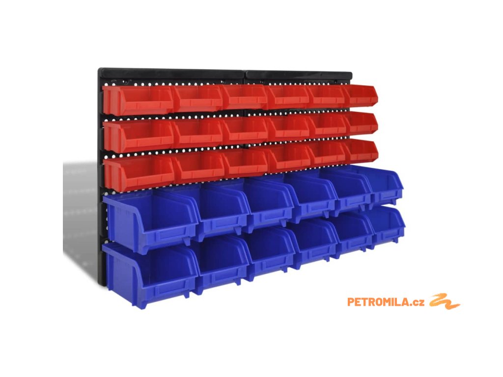 Nástěnné zásobníky do garáže 30 ks sada modré a červené