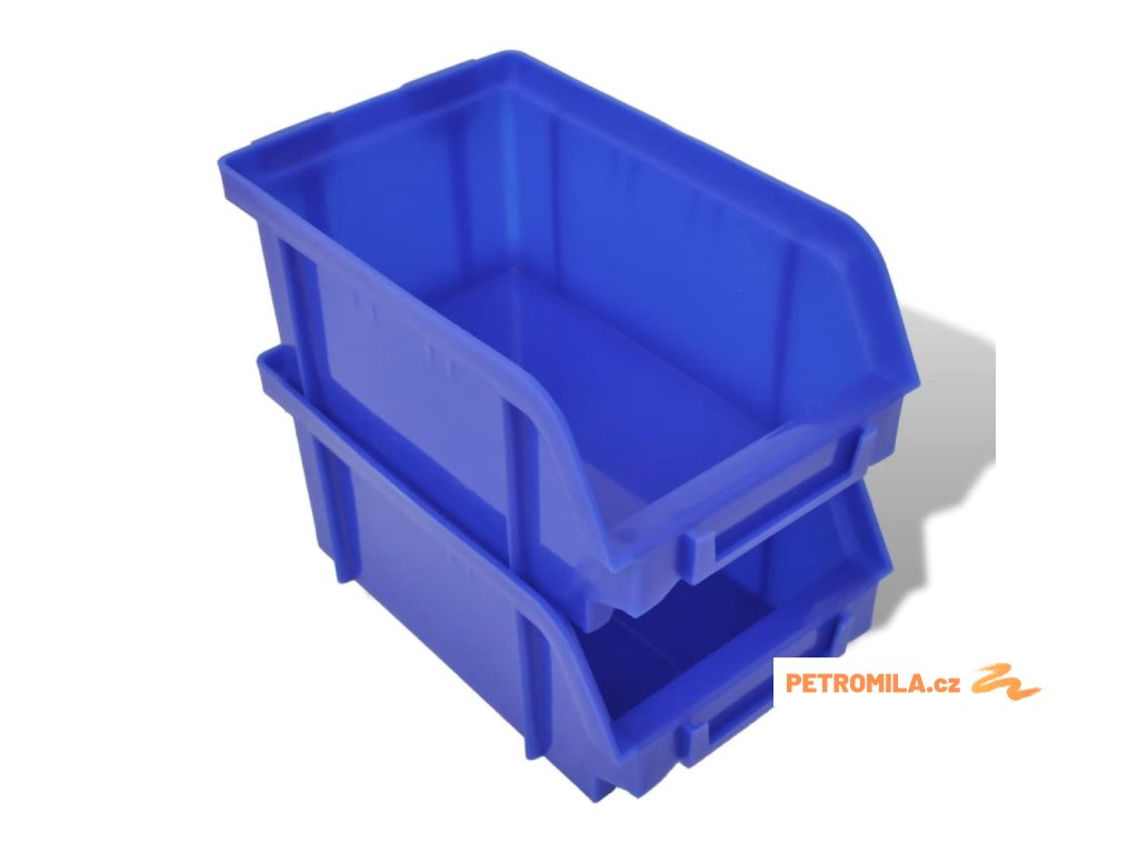 - 12 velké modré zásobníky rozměry : 100 x 75 x 155 mm ( Š x H x L )