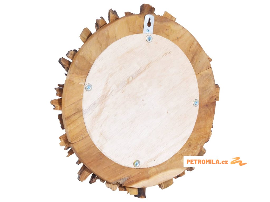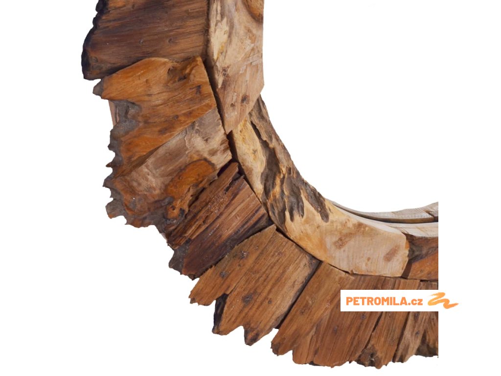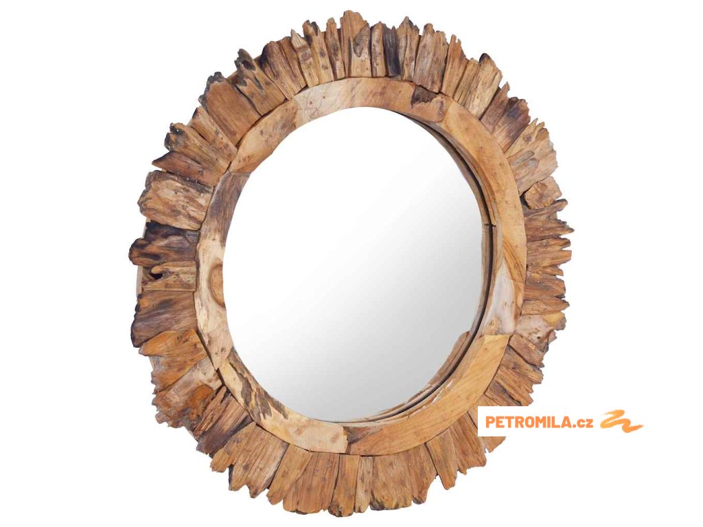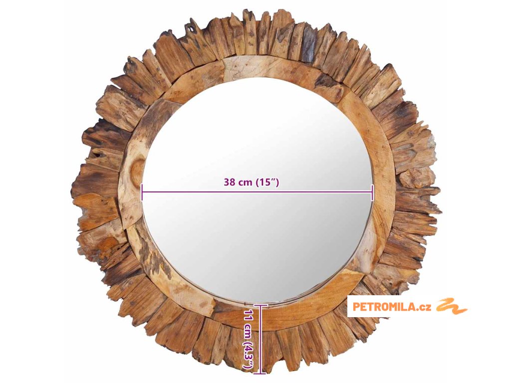 Rám zrcadla s designem okvětních lístků je ručně vyrobený z přírodního teakového dřeva. Zrcadlo má tudíž výrazný rustikální styl. Vypadá skvěle v každé místnosti domu a lze ho zavěsit i v koupelně. Zrcadlo je připravené k montáži na zeď, háček je již nainstalovaný na zadní desce.