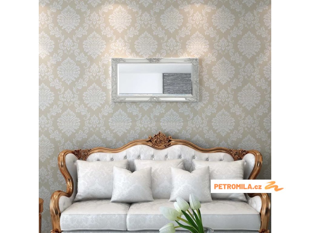Zrcadlo se starožitným vzhledem má robustní dřevěný rám, na kterém byl pečlivě vytvořen dekorativní barokní vzor. Zkosený okraj navíc dodává tomuto zrcadlu jedinečný vzhled.