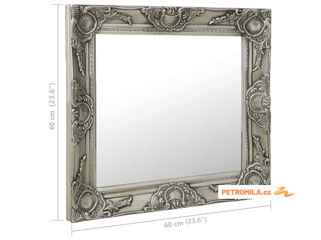 Nástěnné zrcadlo barokní styl 60 x 60 cm stříbrné