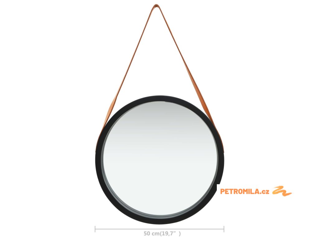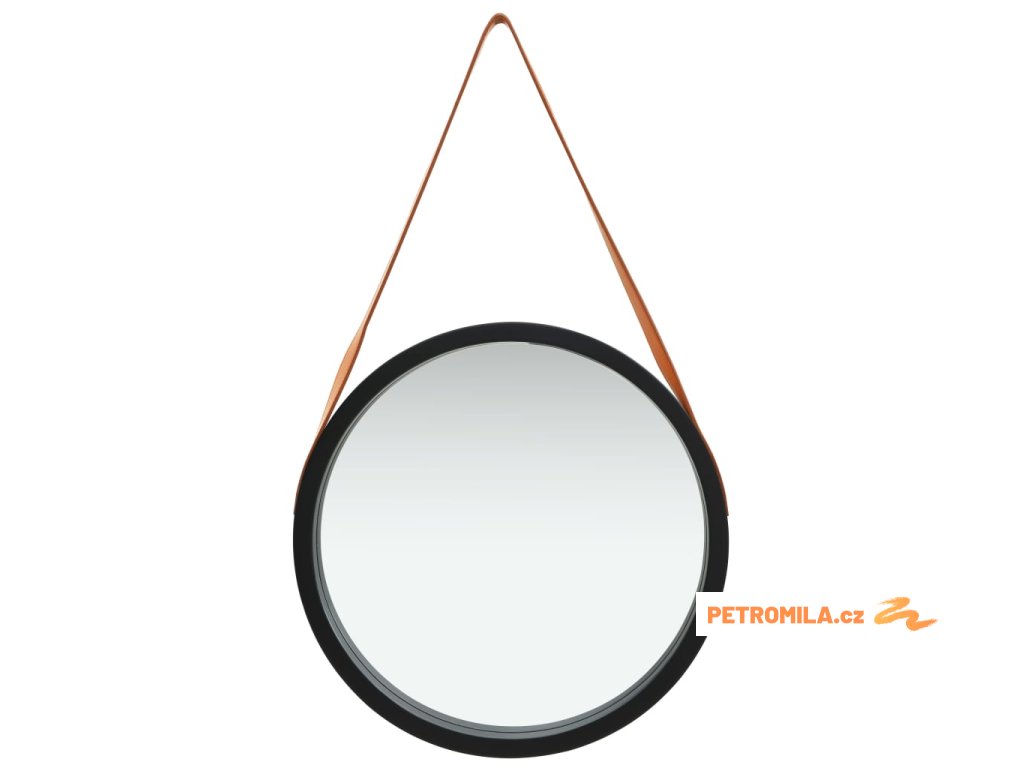 Nástěnné zrcadlo s popruhem 50 cm černé