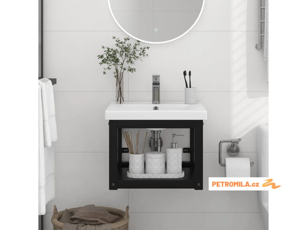 Nástěnný koupelnový regál pod umyvadlo černý 40x38x31 cm železo