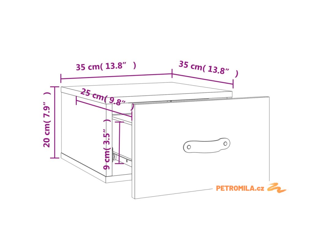 Nástěnný noční stolek bílý 35 x 35 x 20 cm