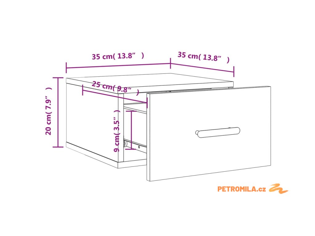 Nástěnný noční stolek bílý 35 x 35 x 20 cm