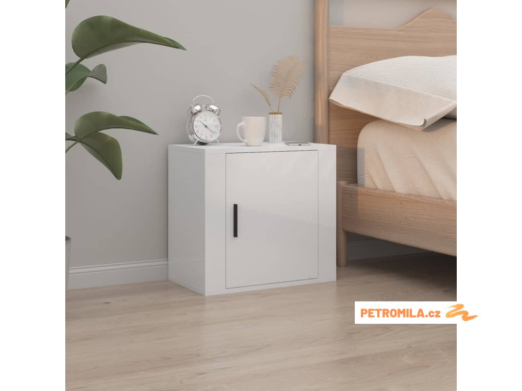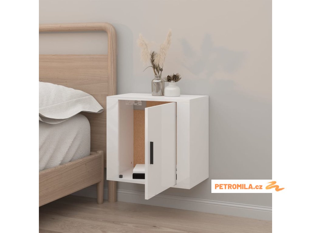 Nástěnný noční stolek bílý s vysokým leskem 50x30x47 cm