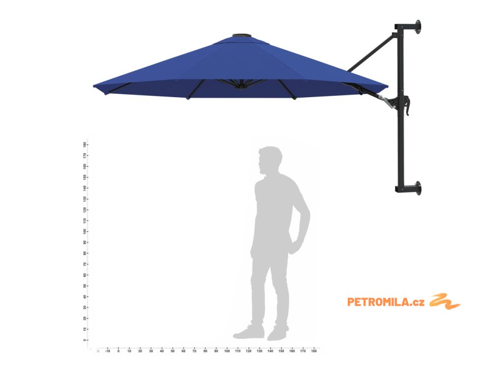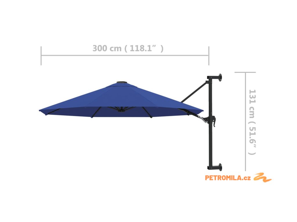 Nástěnný slunečník s kovovou tyčí 300 cm modrý