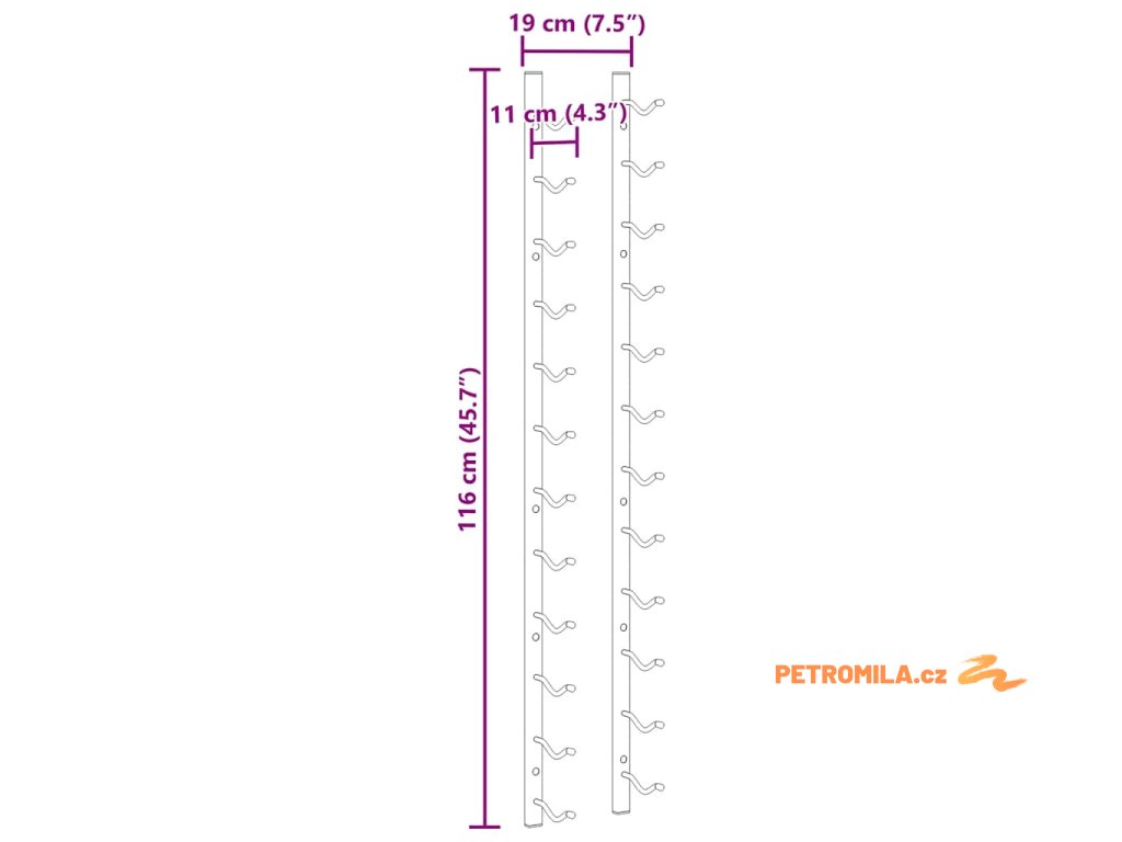 Stojan na víno pojme až 12 lahví vína. Jeho jednoduchý a úhledný design vnese do vaší domácnosti svěží dekor v moderním stylu. Výborně se také hodí jako dárek pro přátele či známé, kteří milují víno. Jelikož je vyrobený z oceli s práškovým nástřikem, je mimořádně odolný! Sestavení stojanu je snadné, veškerý montážní materiál pro upevnění ke stěně je totiž součástí balení.