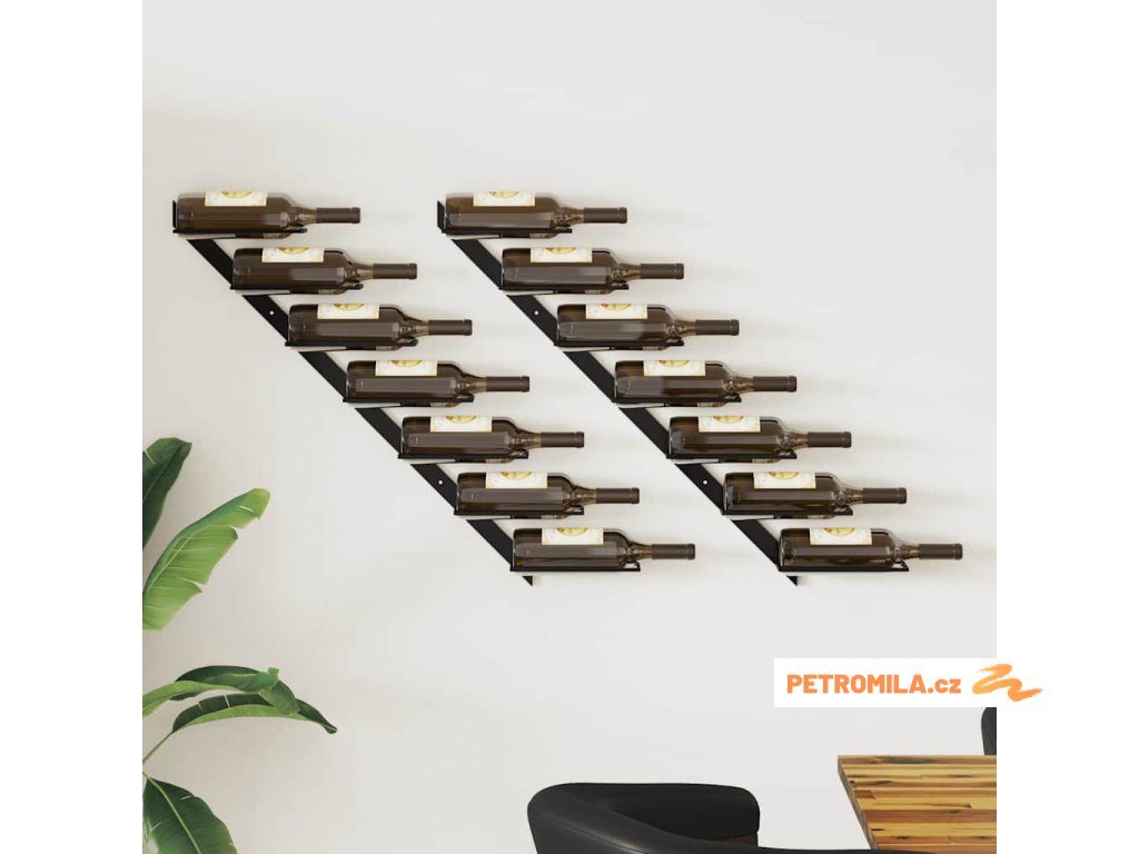 Nástěnný stojan na víno na 14 lahví 2 ks černý kov