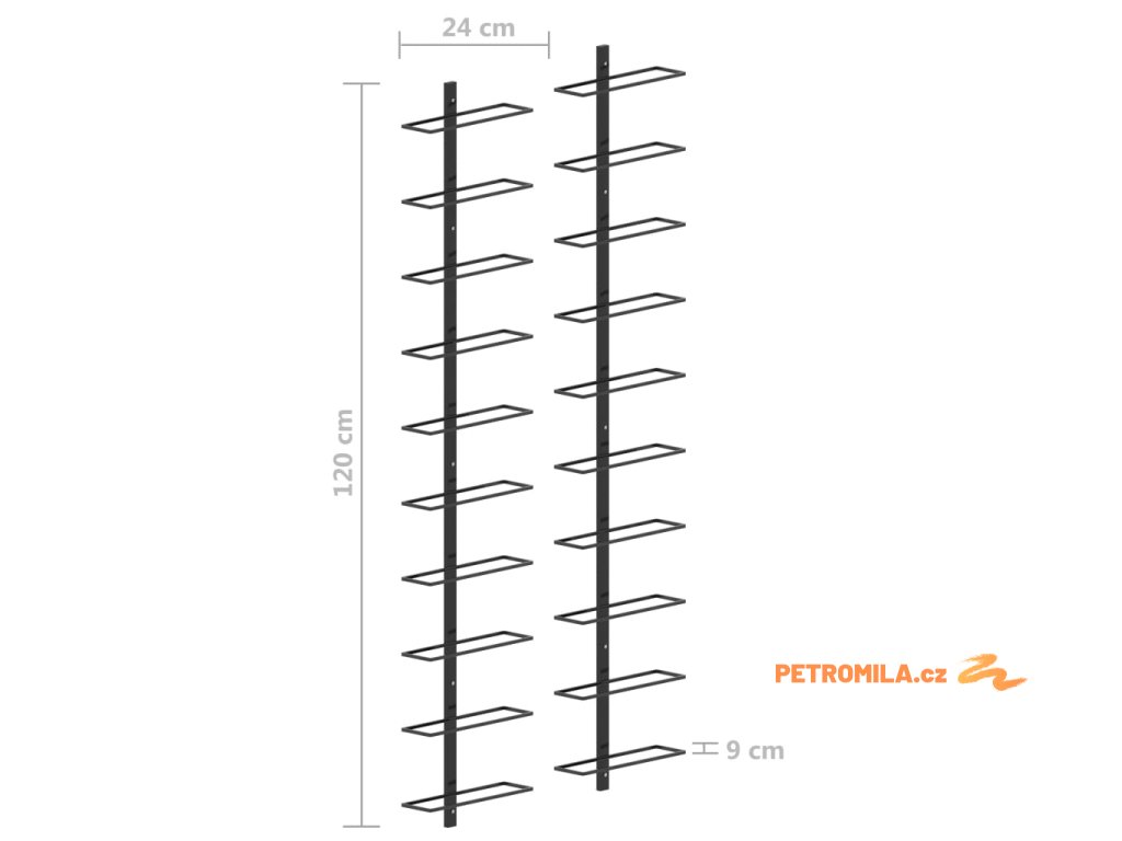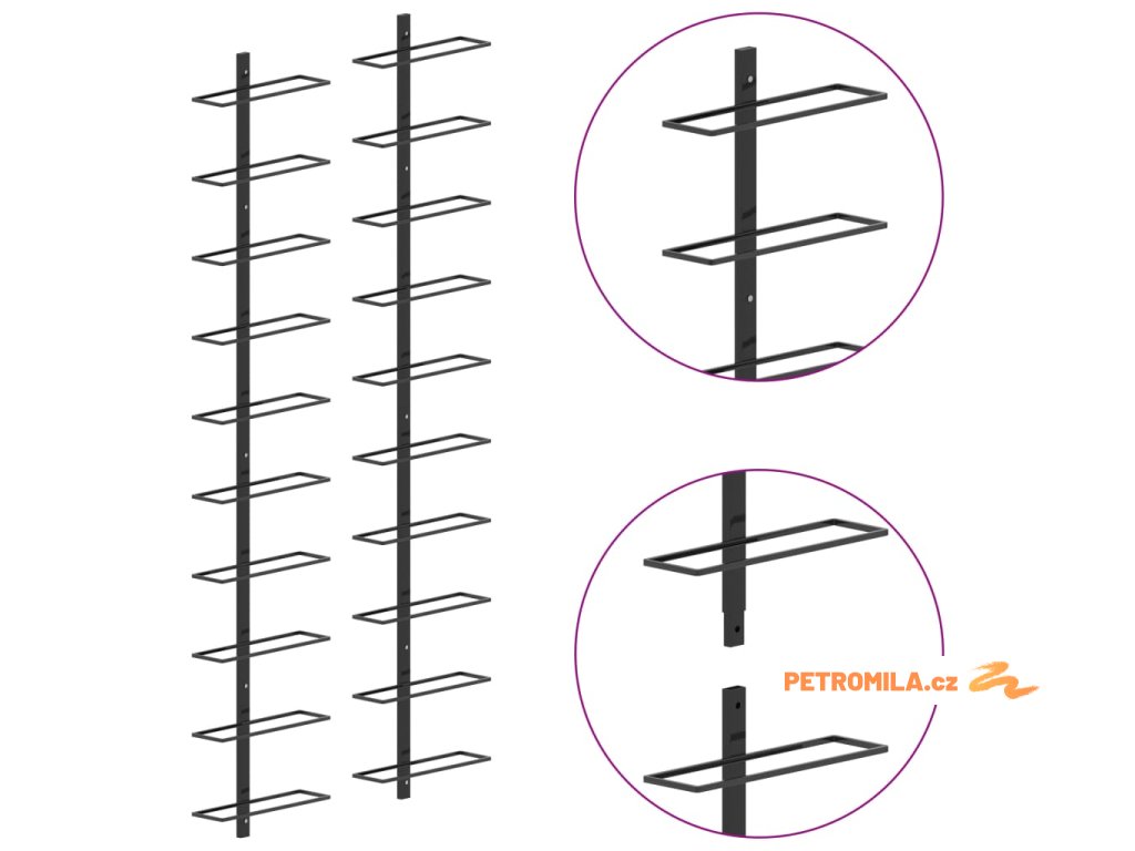 Nástěnný stojan na víno na 20 lahví 2 ks černý kov