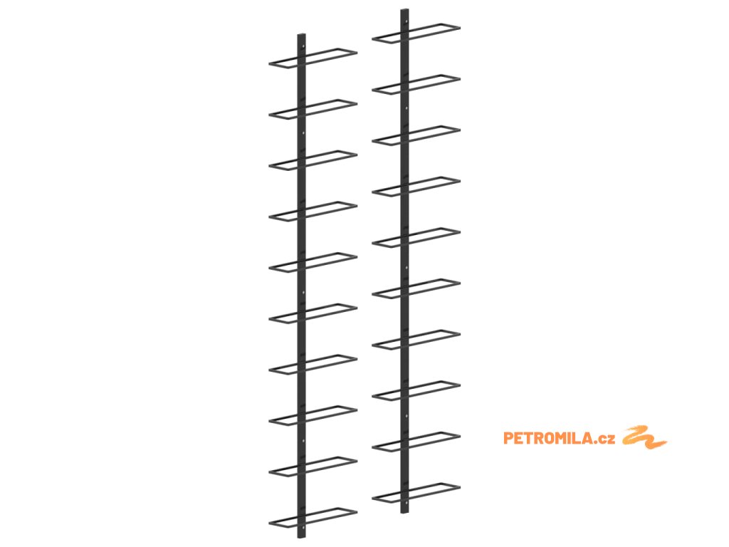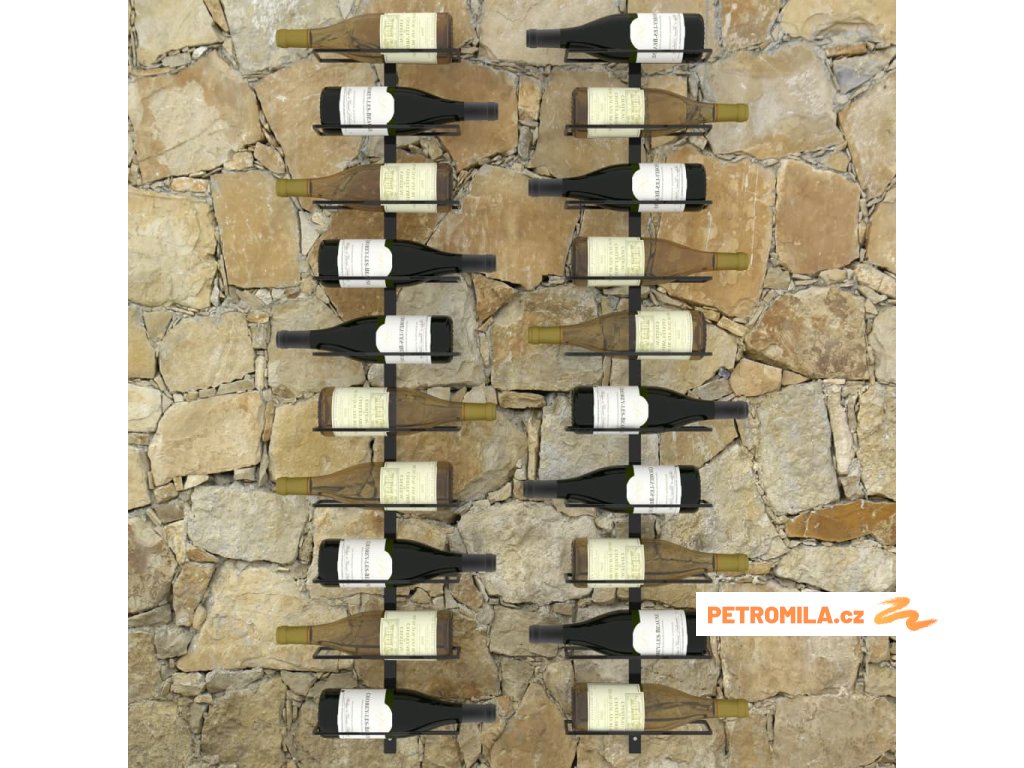 Zásilka obsahuje 2 stojany na víno, které pojmou až 20 lahví vína. Je vyrobený z práškově lakovaného kovu, který se snadno udržuje a zaručuje dlouhou životnost. Je to skvělý dárek pro vaše blízké a přátele, kteří jsou znalci a milovníky dobrého vína. Montážní materiál pro snadné připevnění na zeď je součástí balení. Jeho sestavení je snadné.