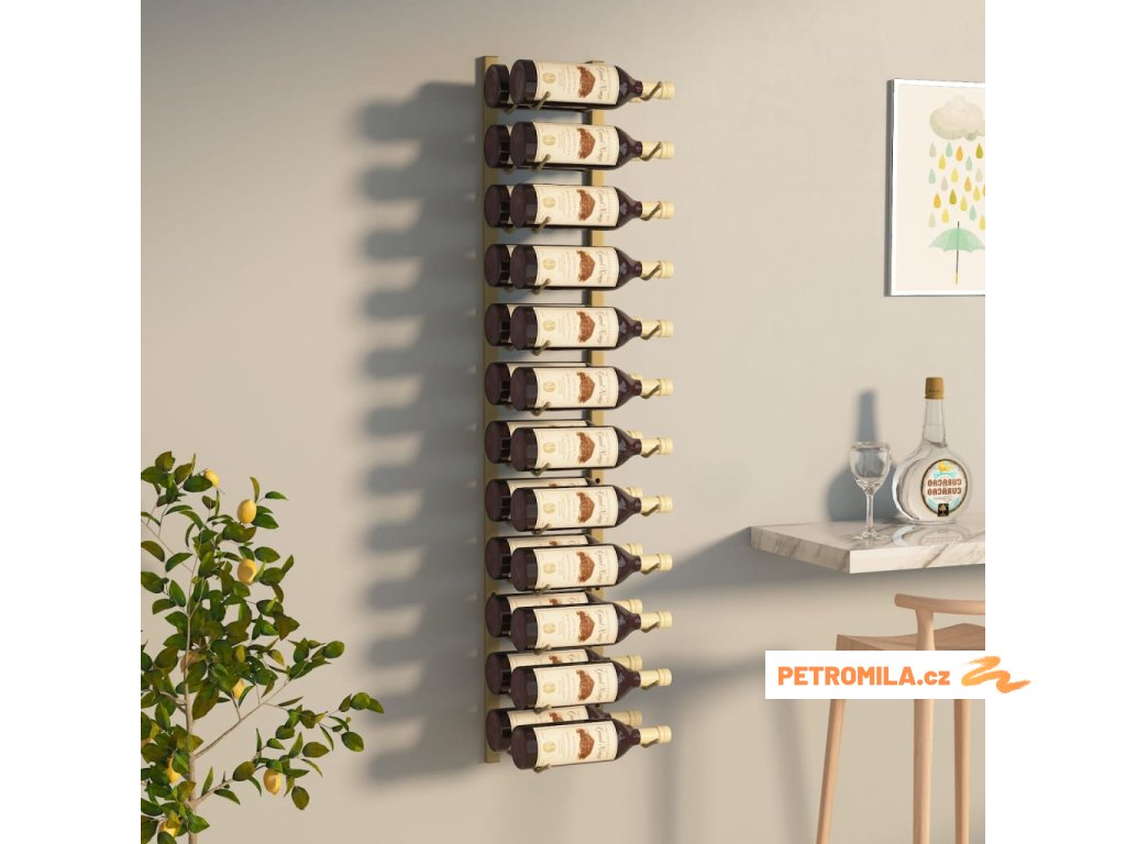 Nástěnný stojan na víno na 24 lahví zlatý železo
